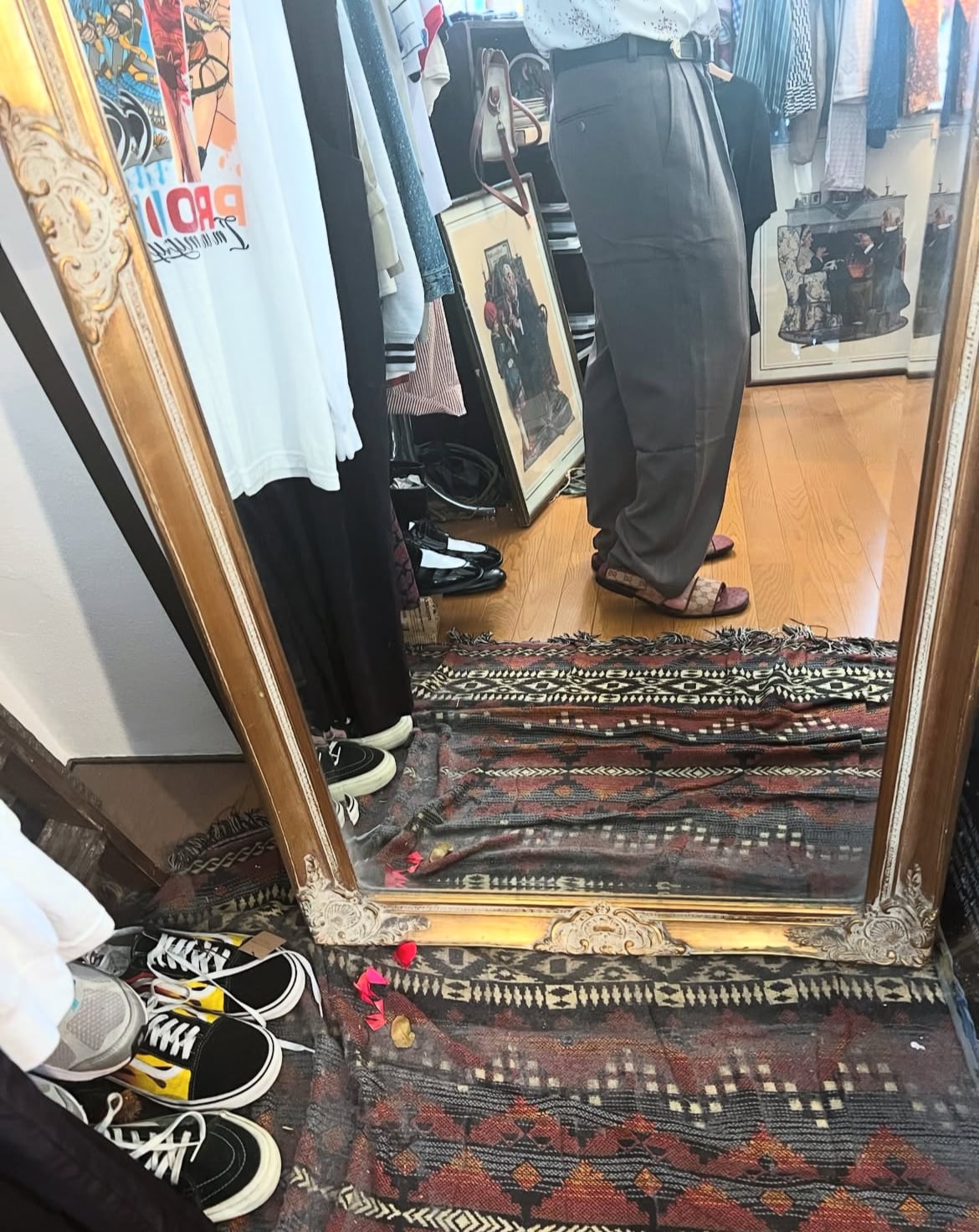 90's〜 "PERRY ELLESE" gray colour rayon slacks【W32 L30】