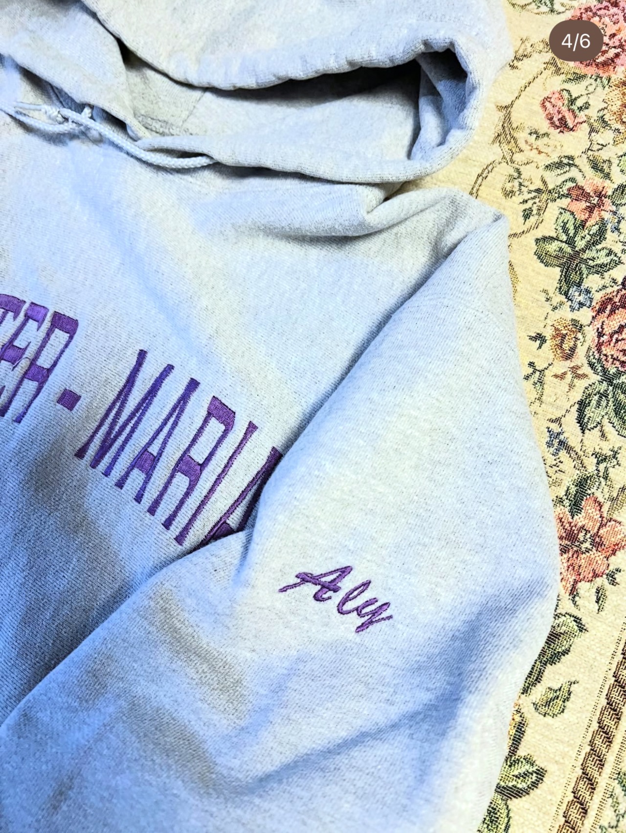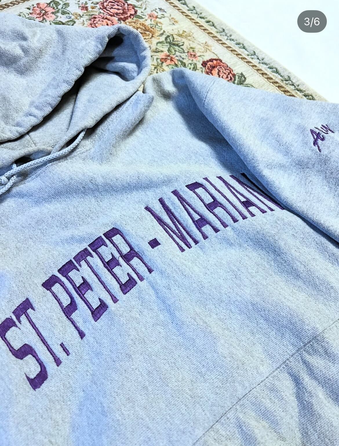 グレーに紫の刺繍が入る、好配色な一点