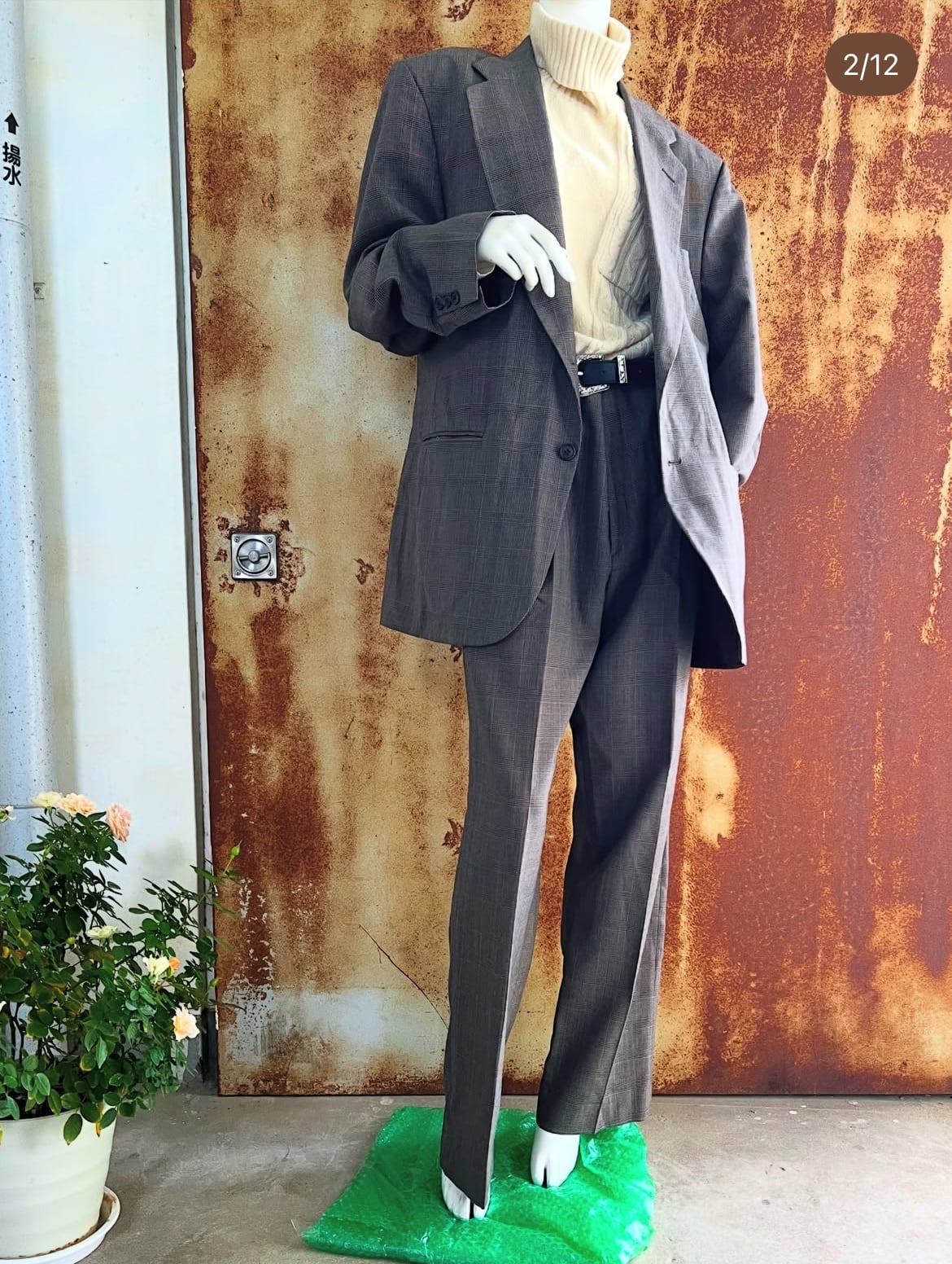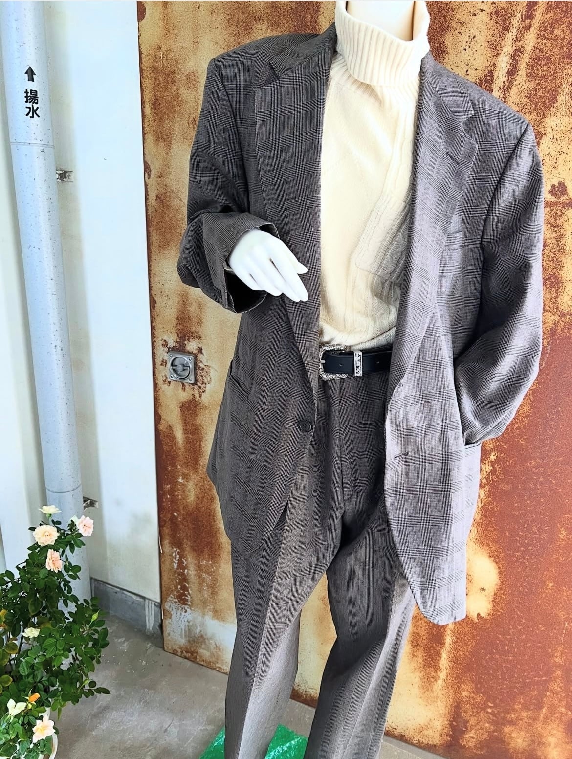 90's TOWN CRAFT "black colour houndstooth design" suits set up 【42R】