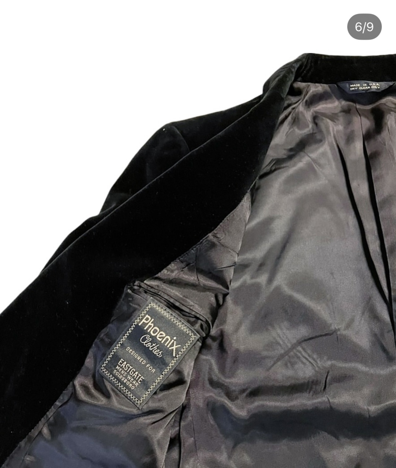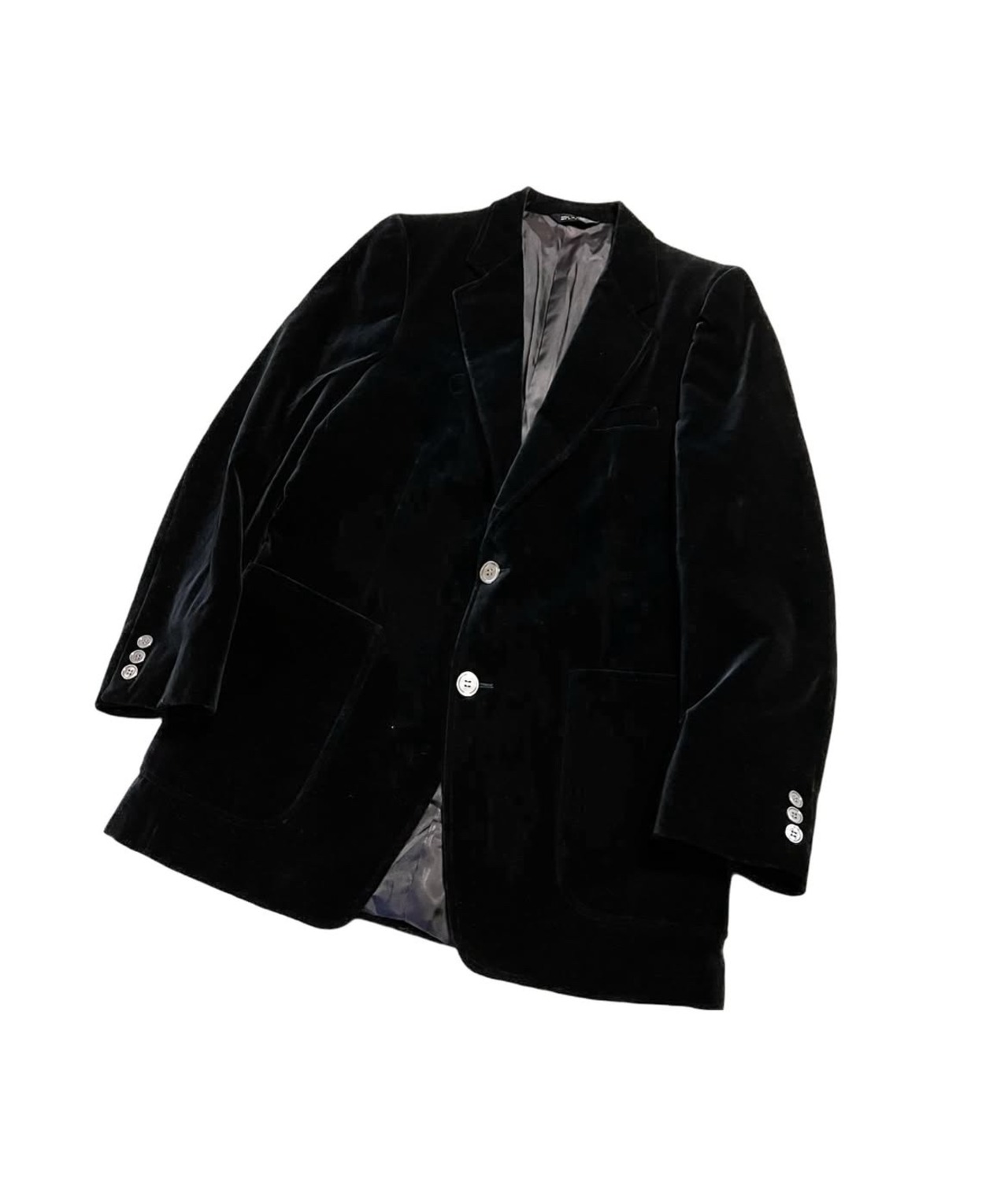 70's〜80's "black colour" velvet tairard jacket 【M】