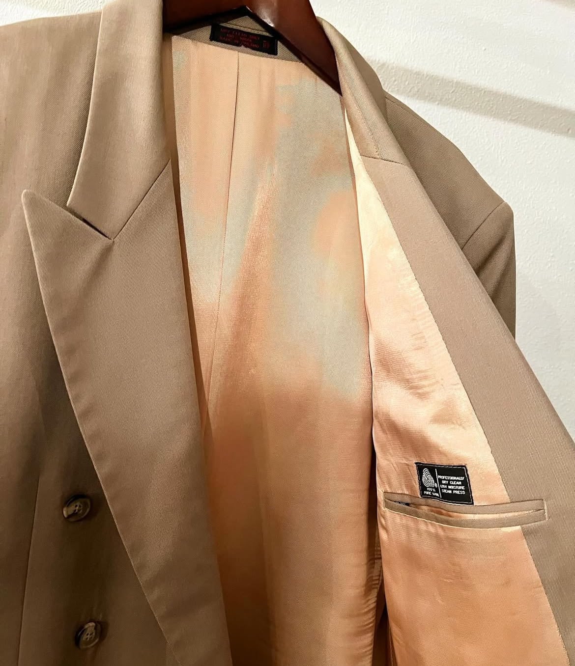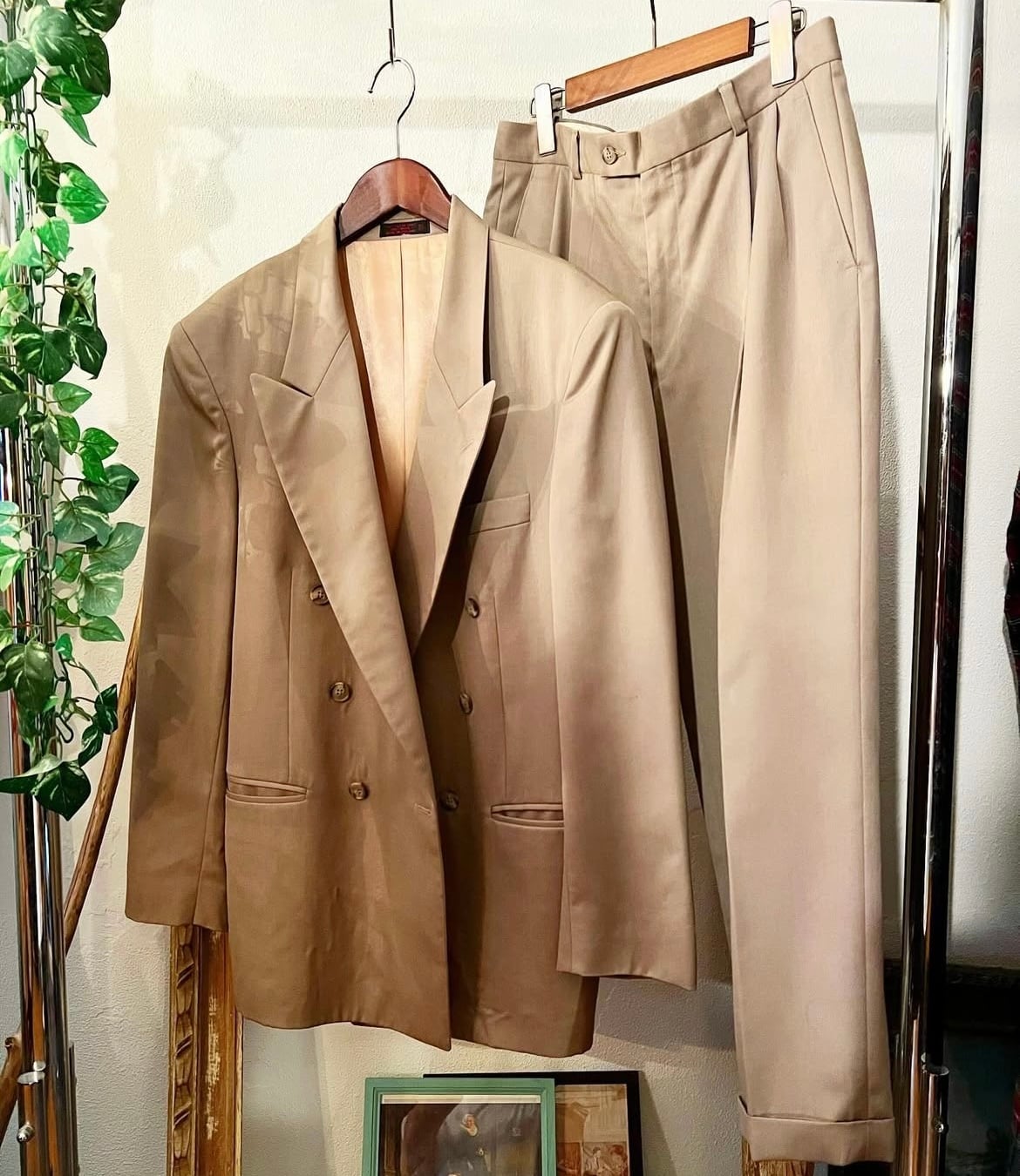 オールシーズン使いやすいベージュのダブルのセットアップ