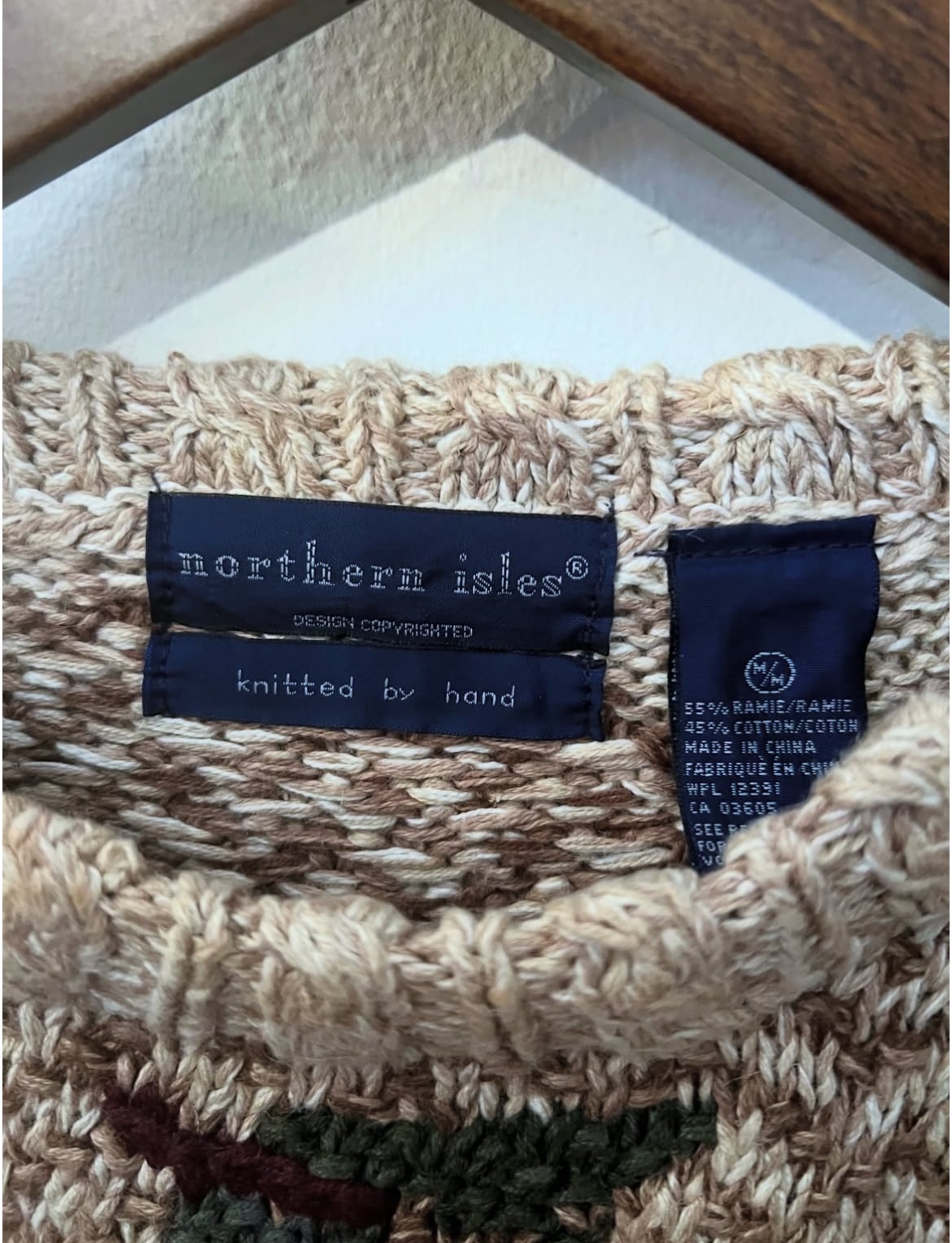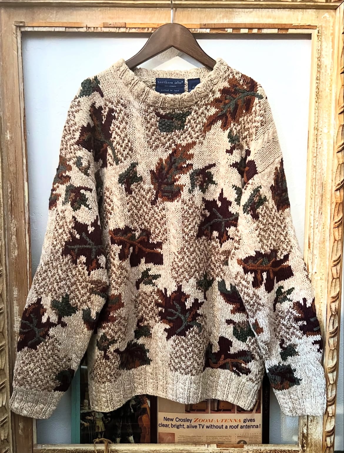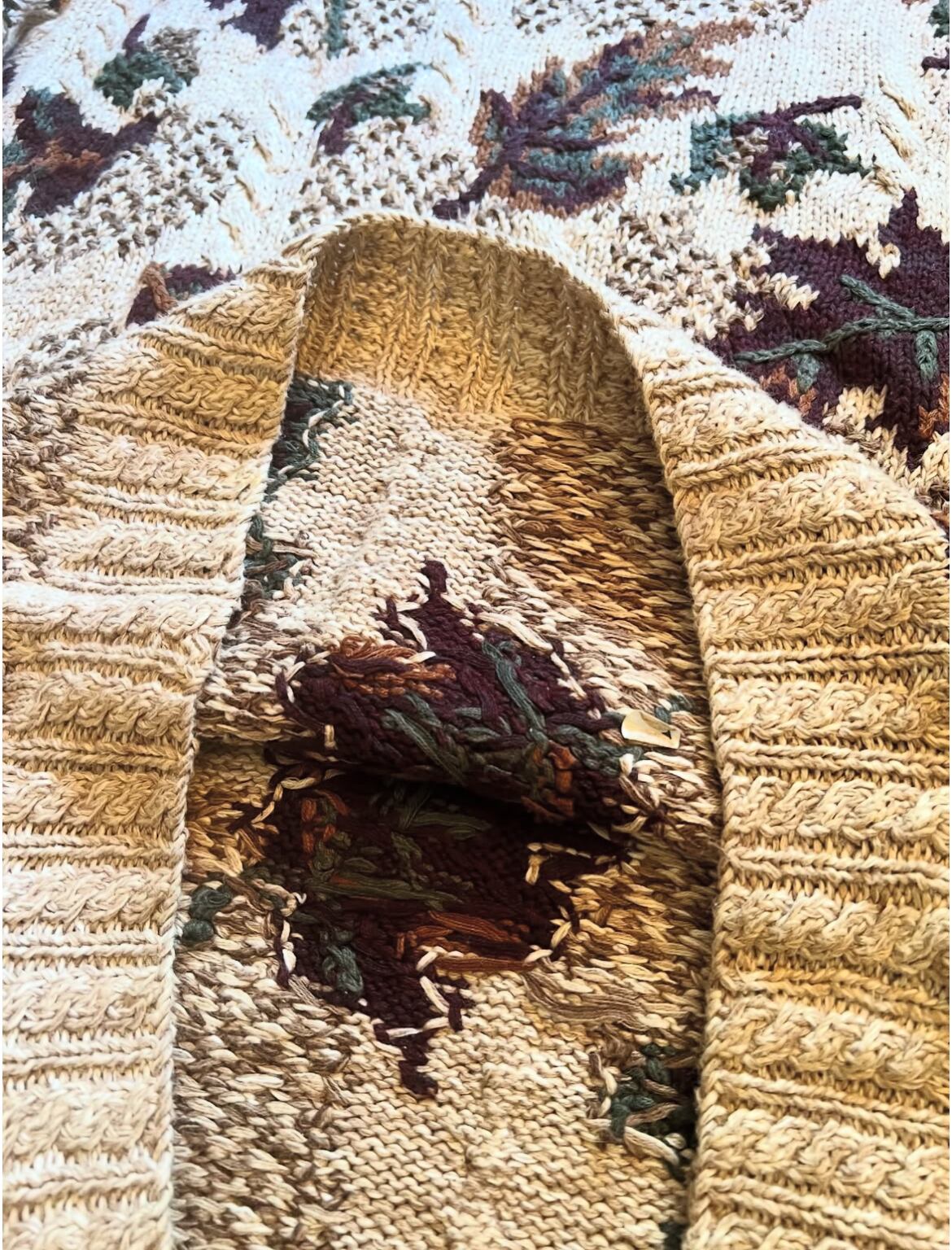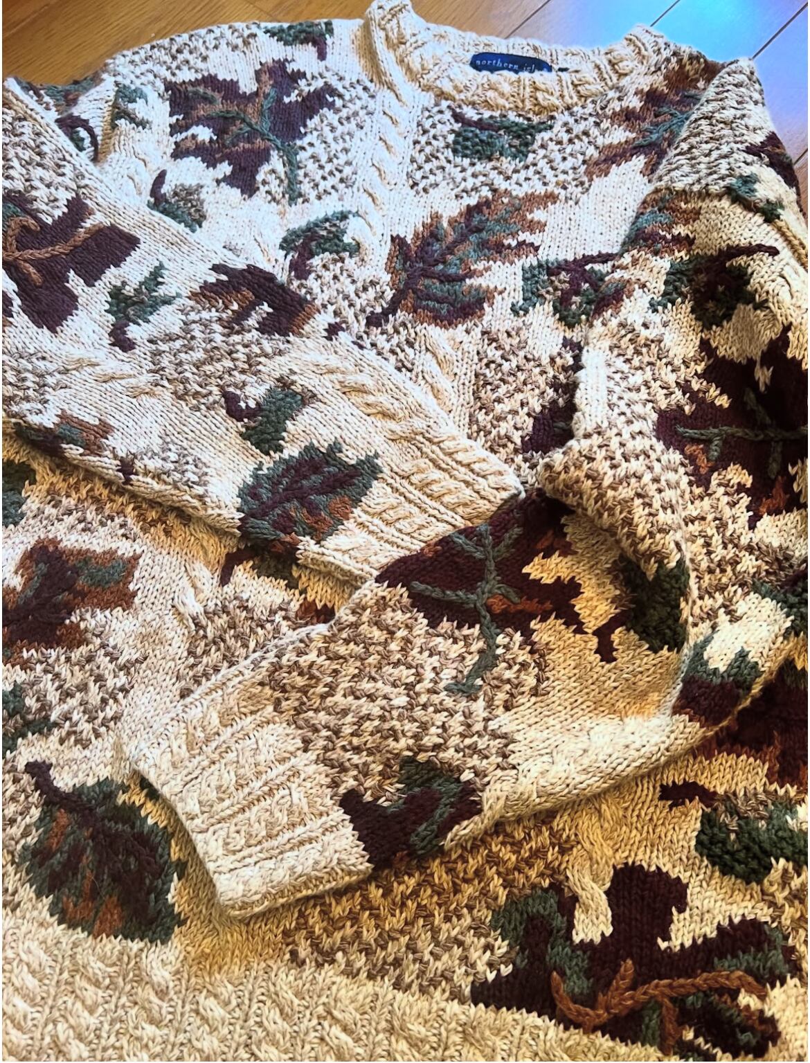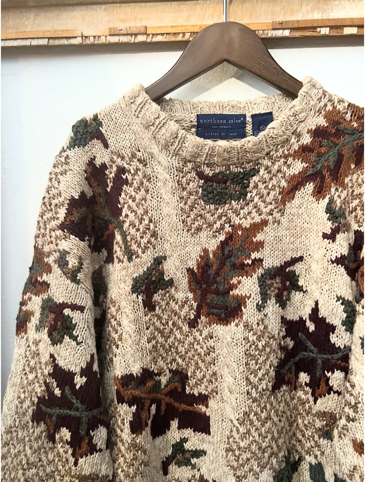 90's northern isles "hand knit" Fallen leaves pattern knit【M 】
