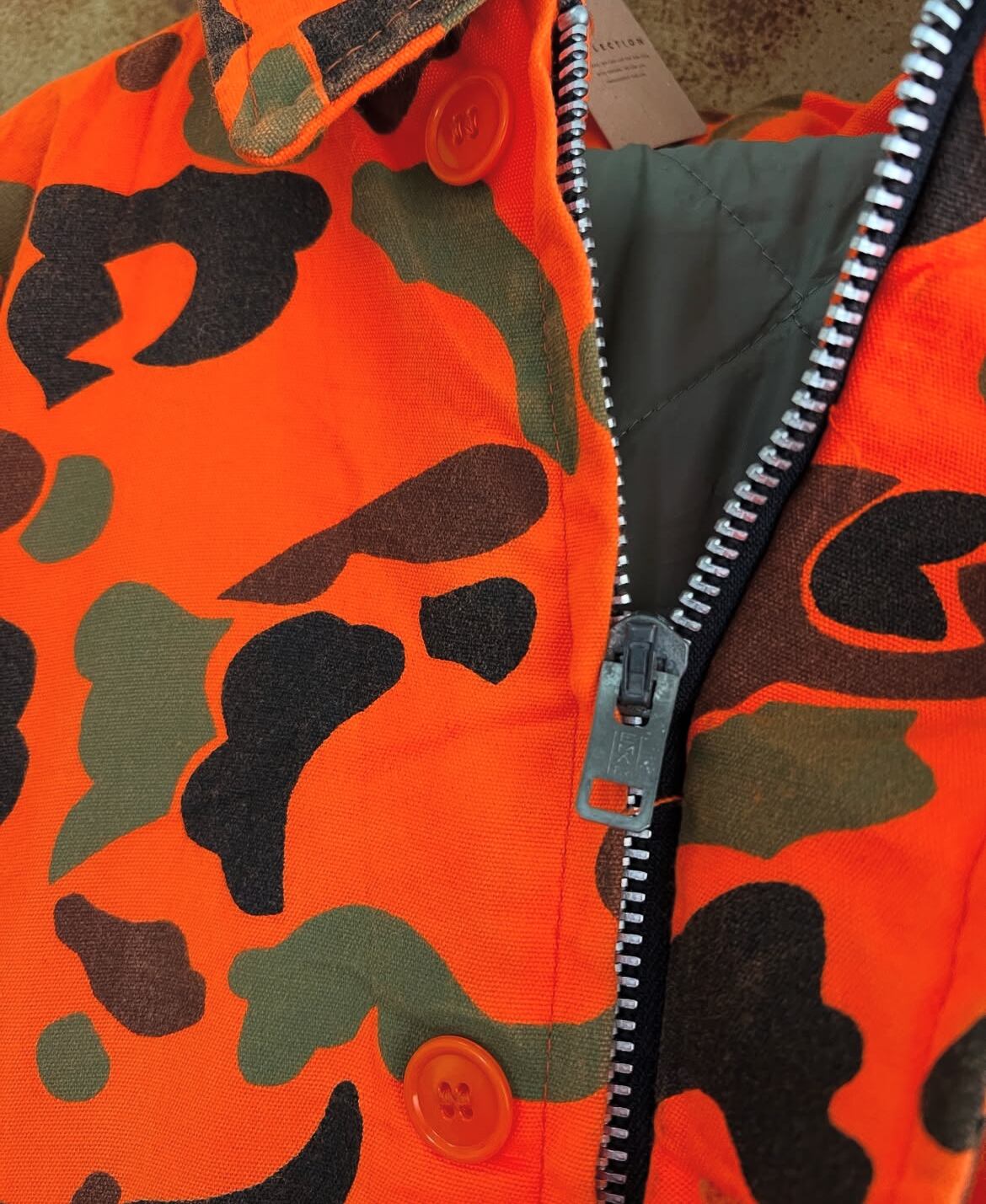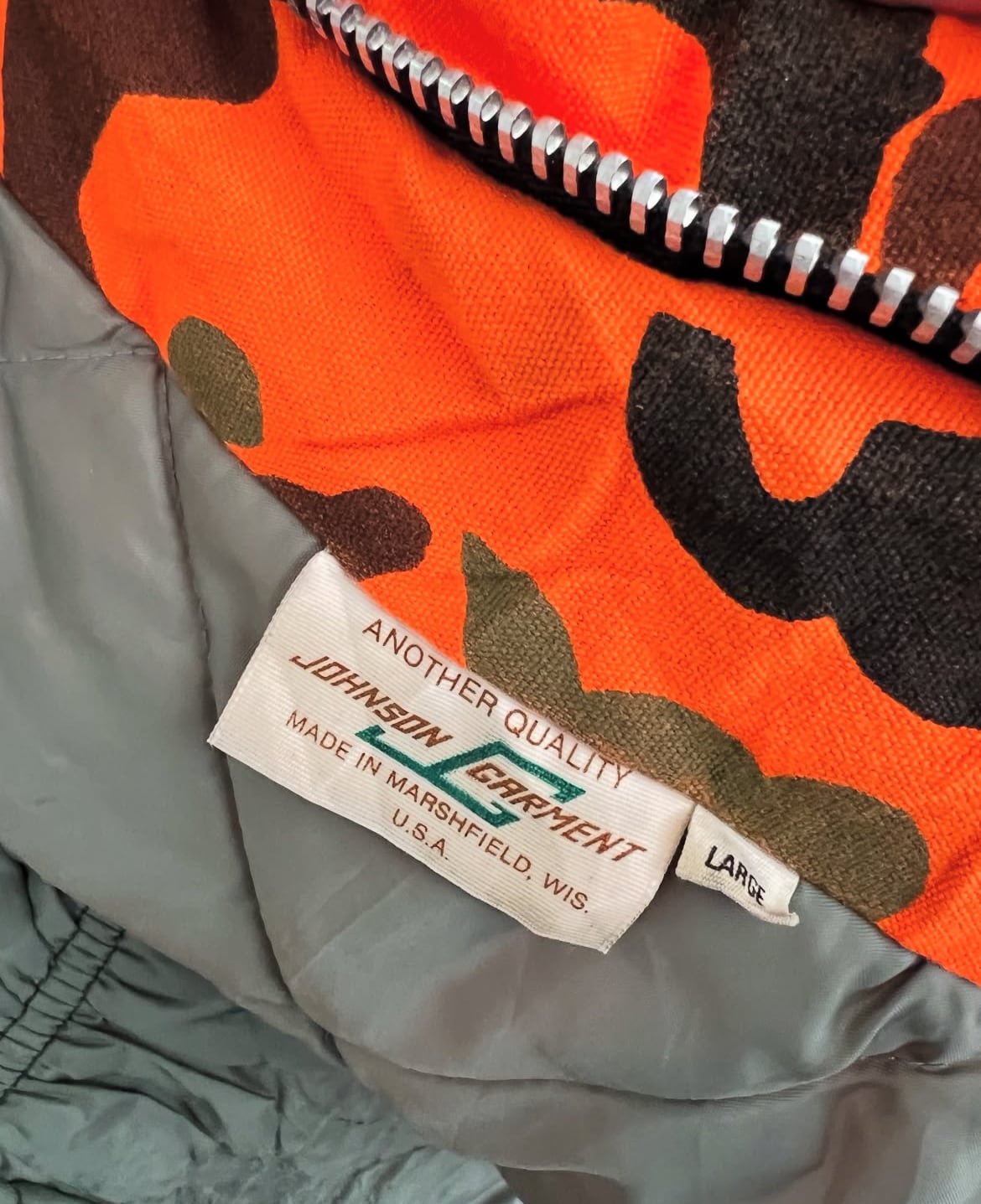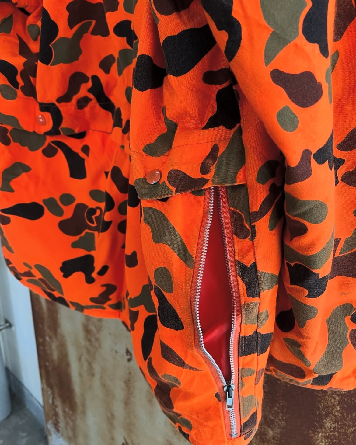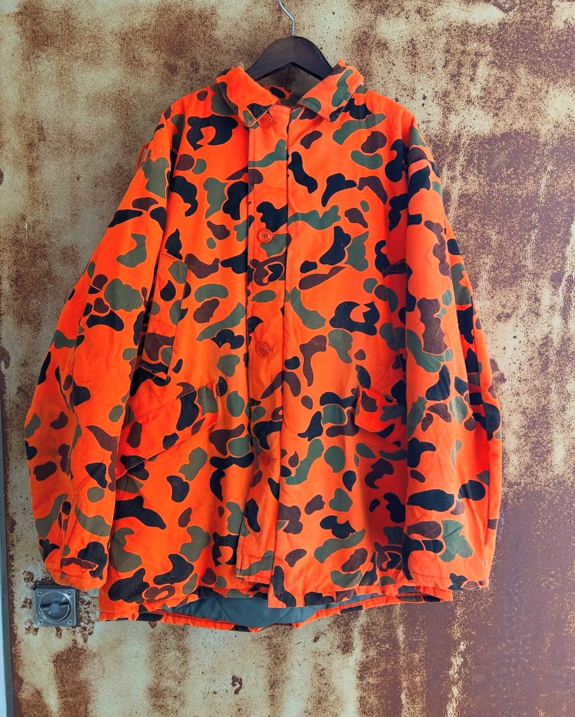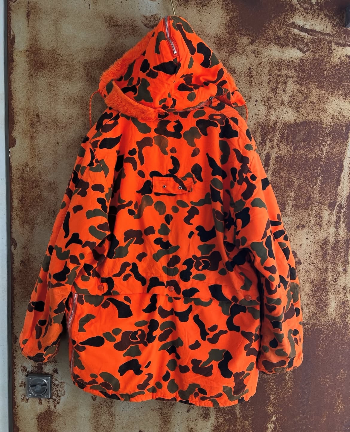 90's〜 JHONSON GARMENT blaze camo hunting jacket with hood 【L】