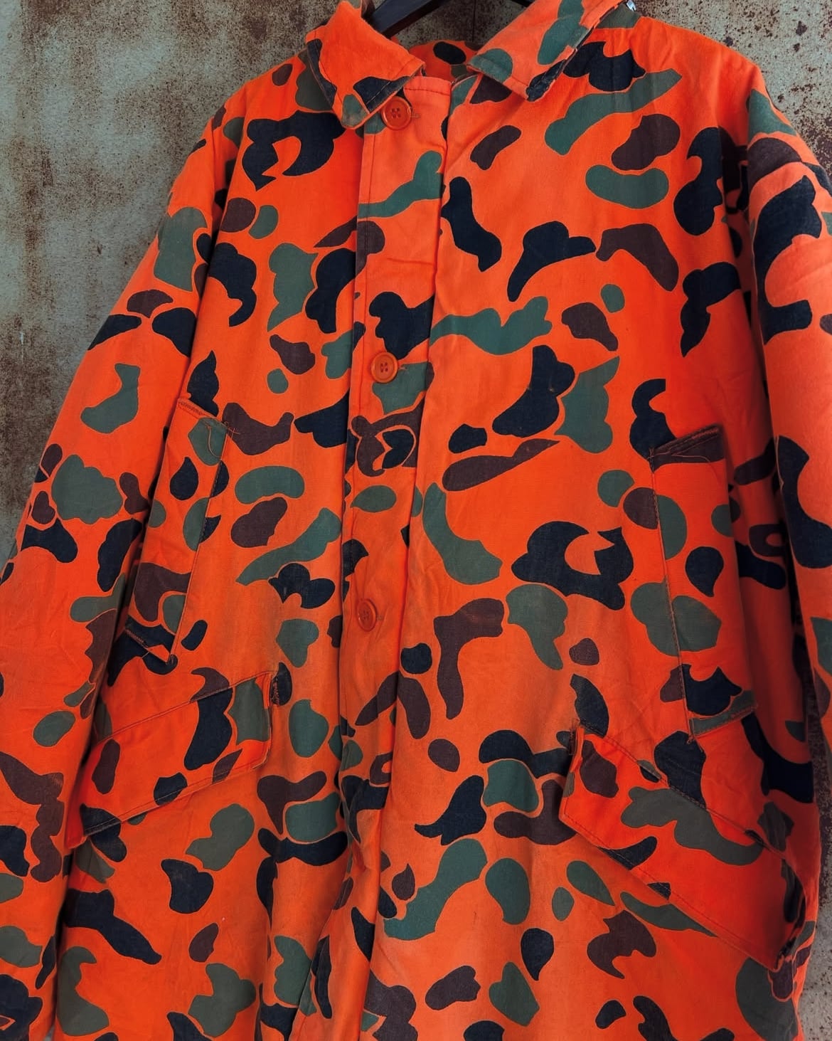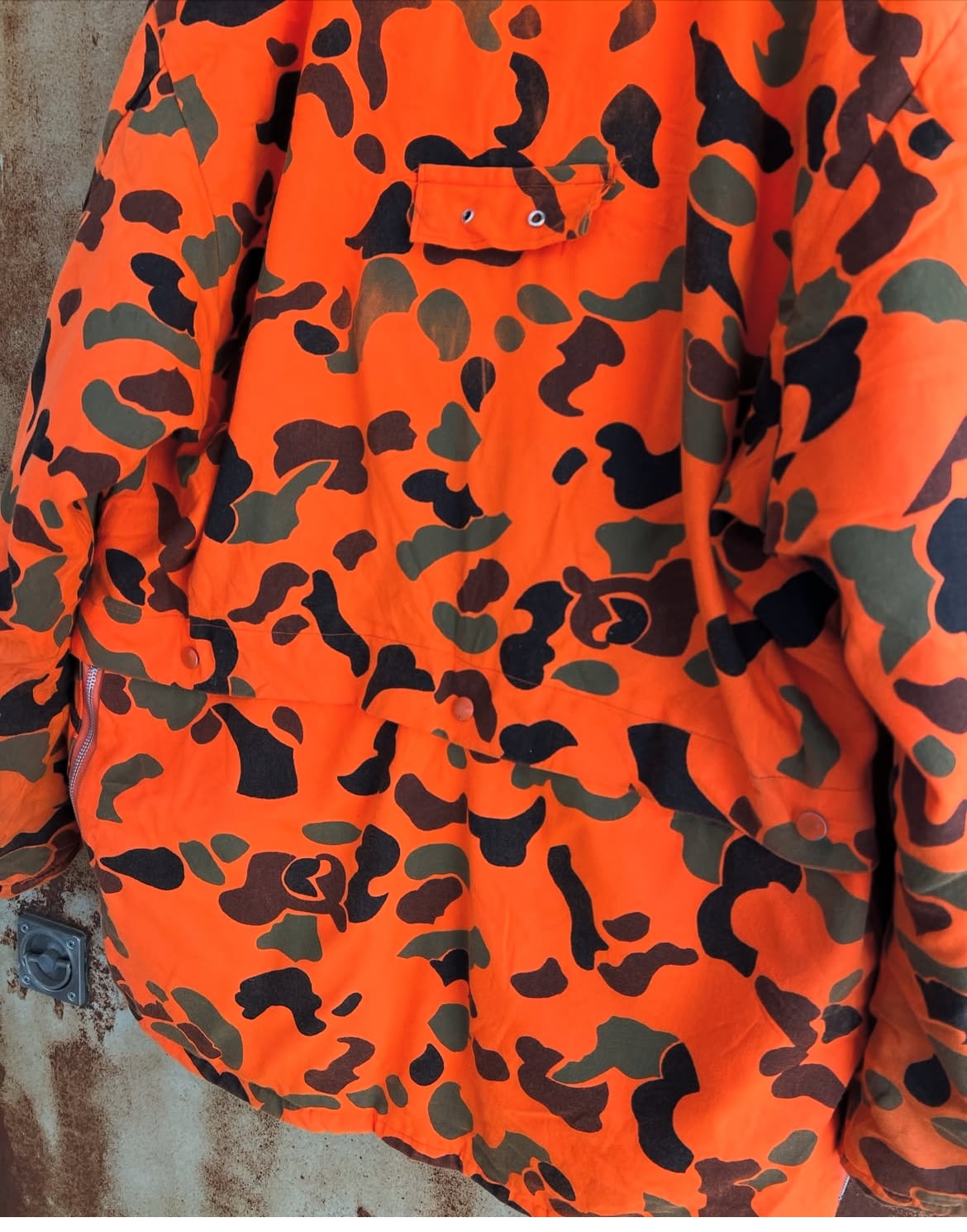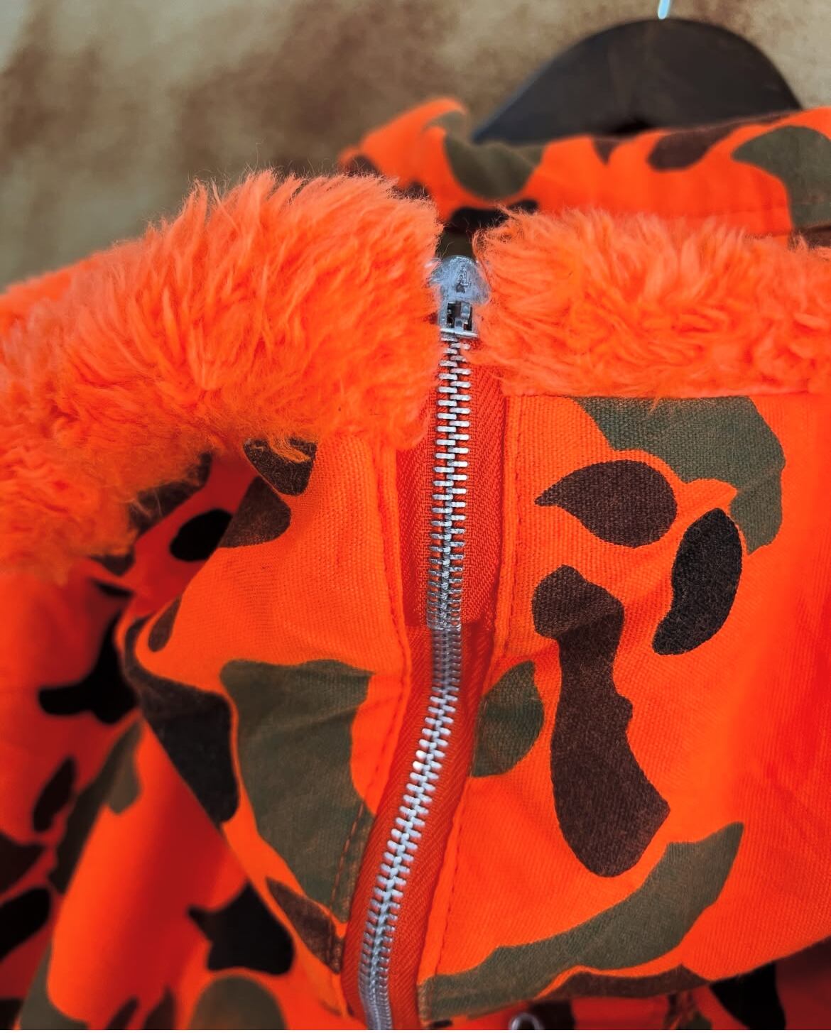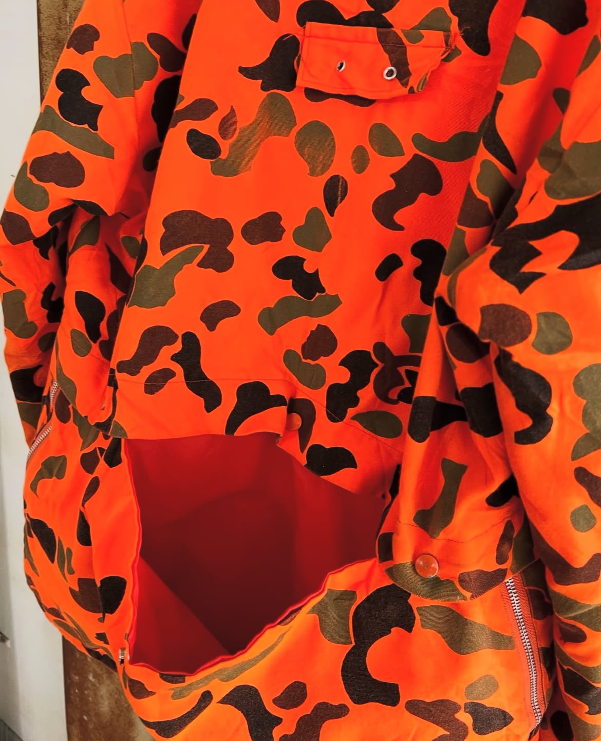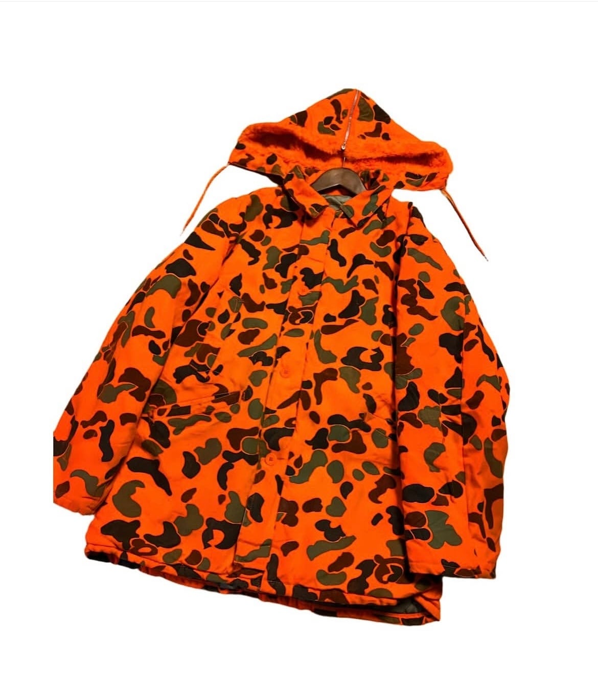 90's〜 JHONSON GARMENT blaze camo hunting jacket with hood 【L】