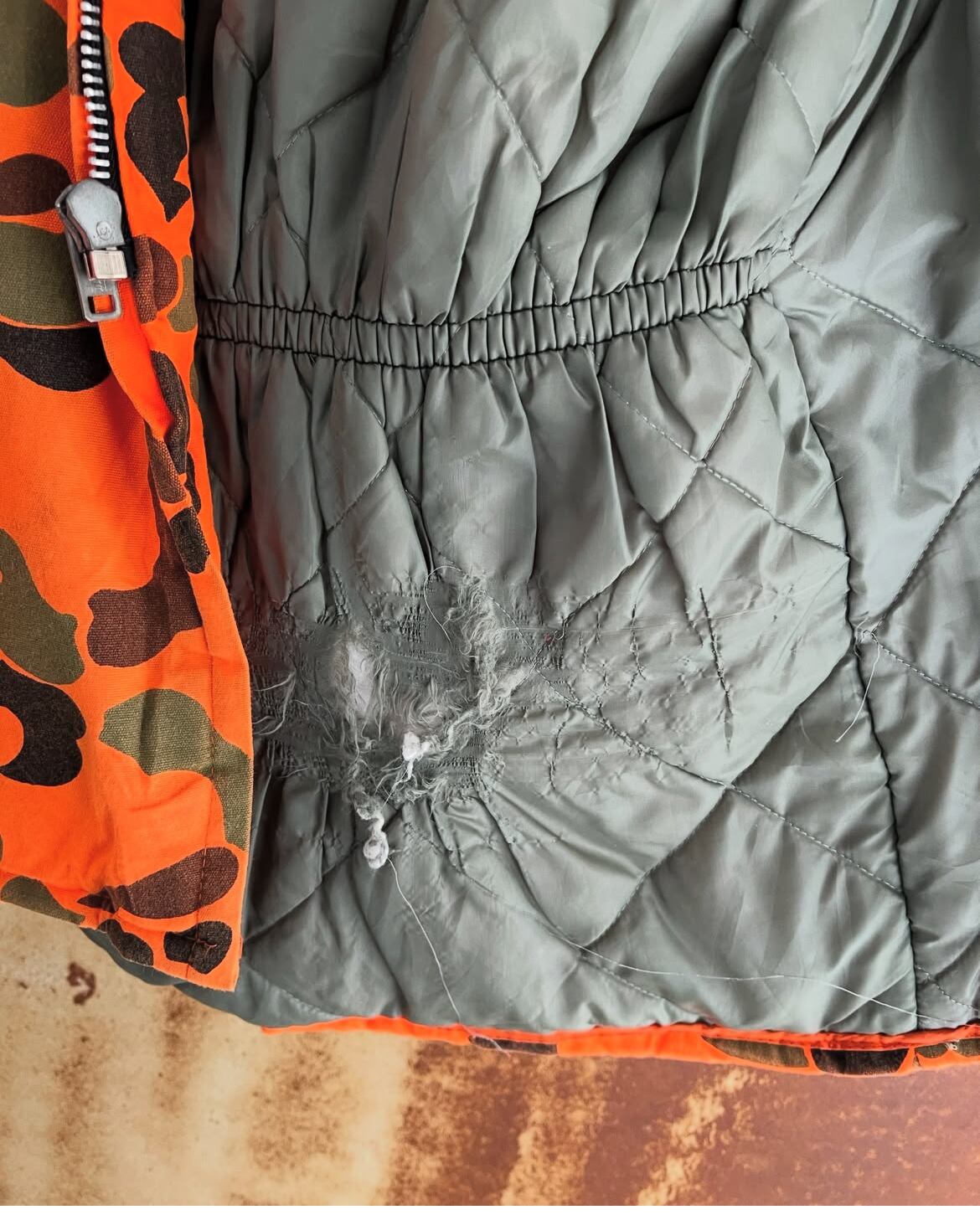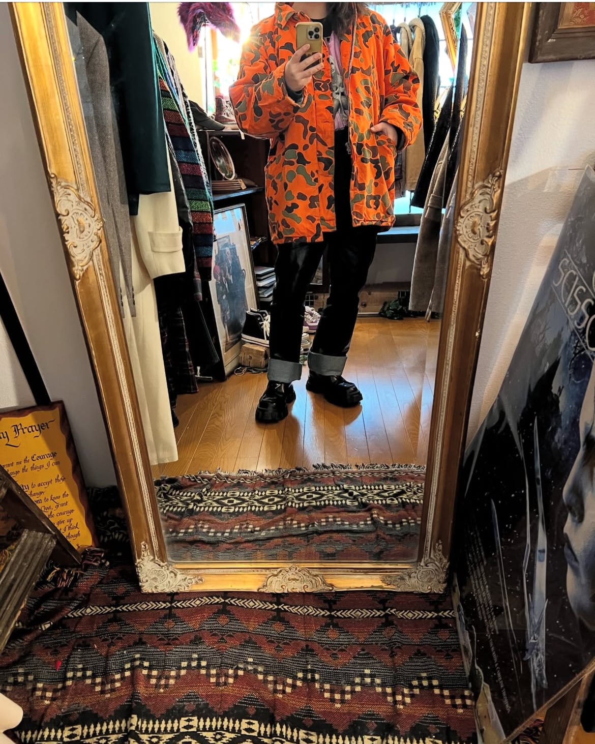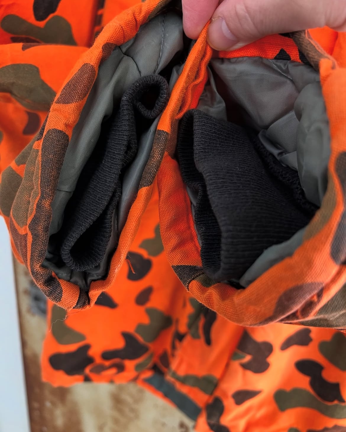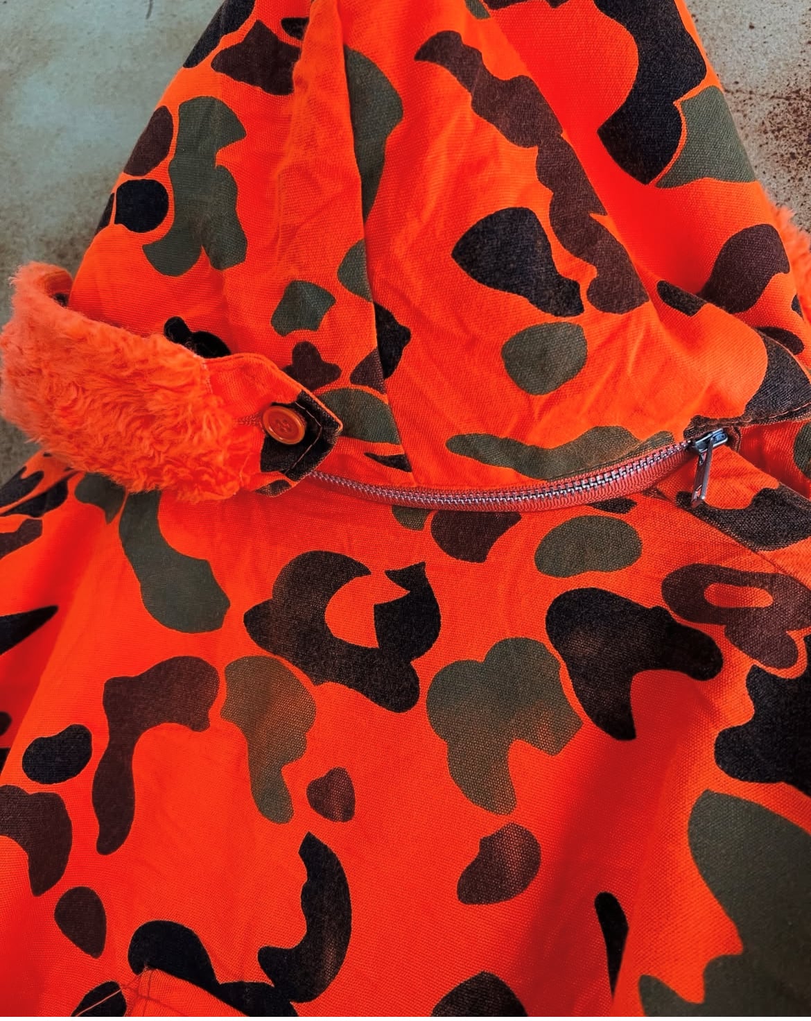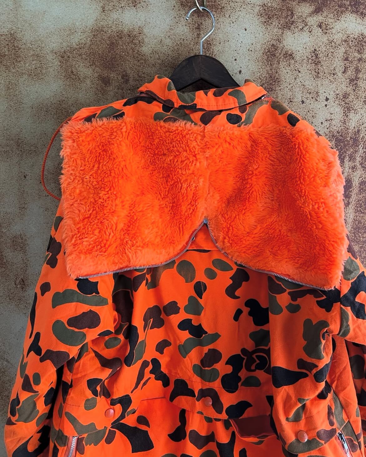 90's〜 JHONSON GARMENT blaze camo hunting jacket with hood 【L】