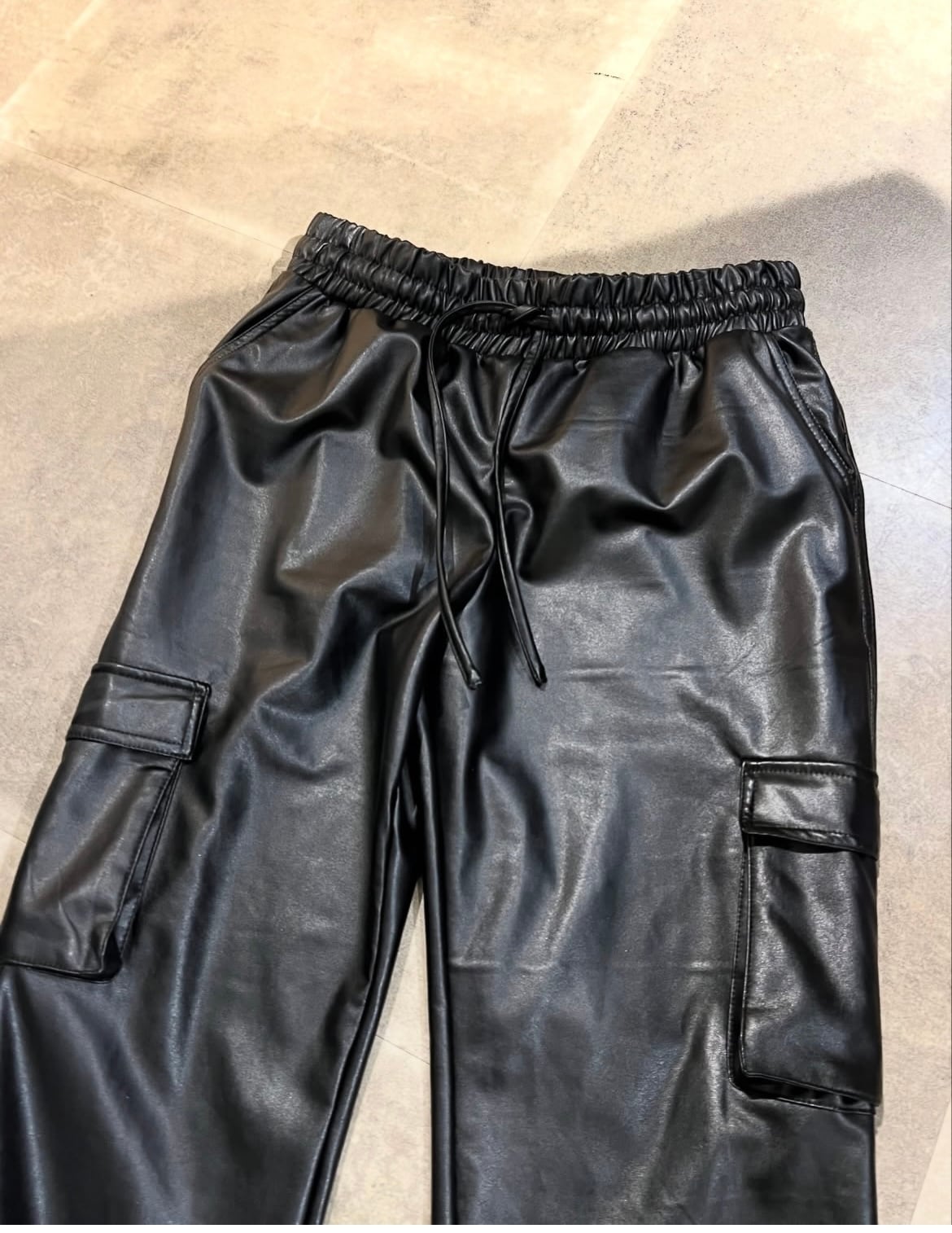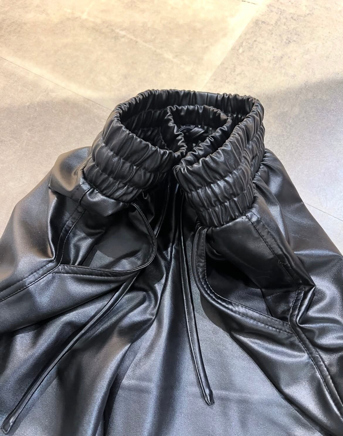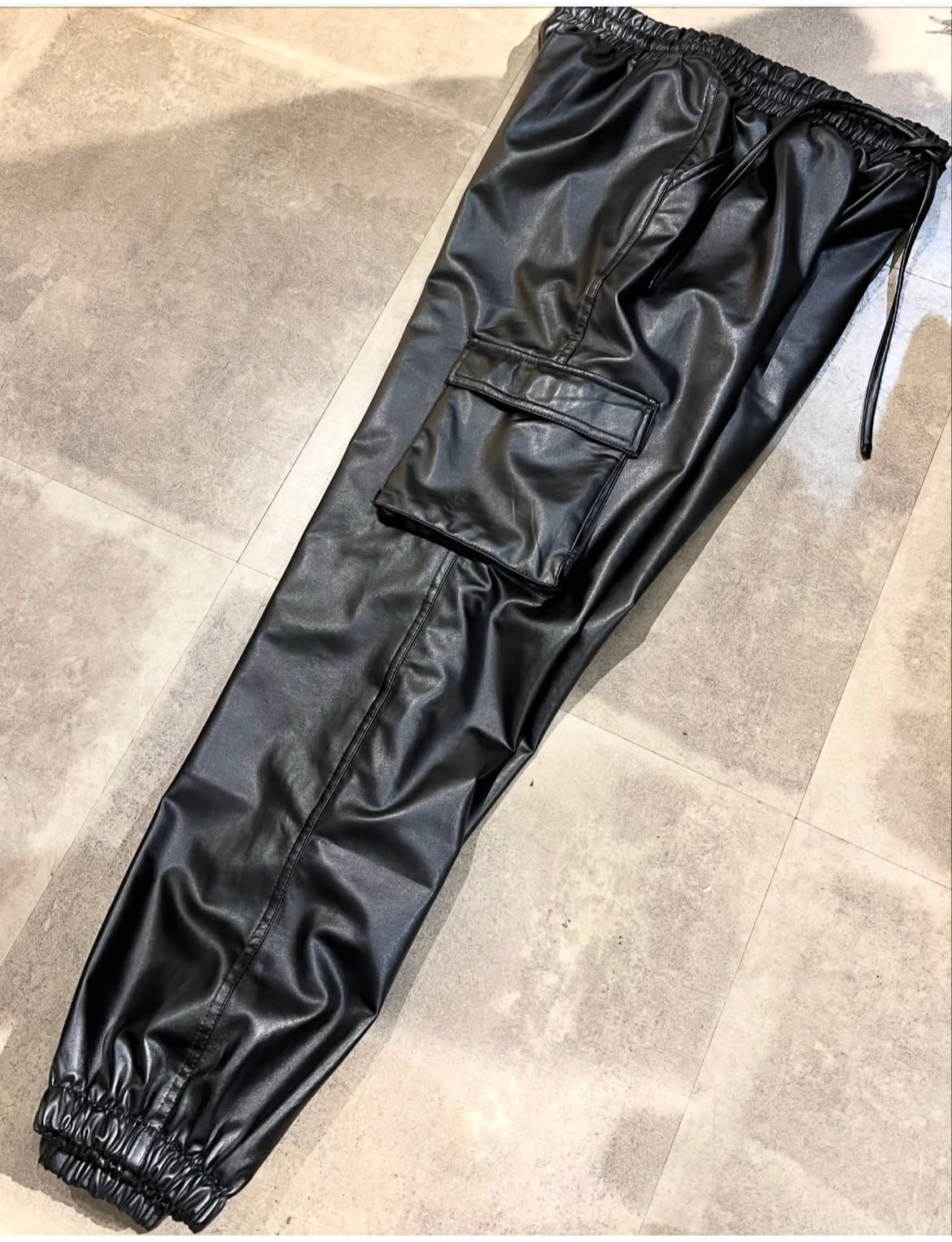フェイクレザーのカーゴパンツ