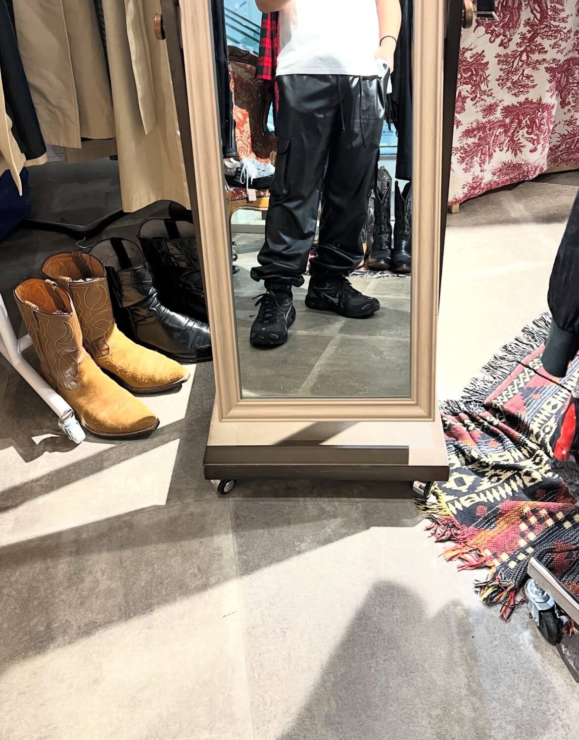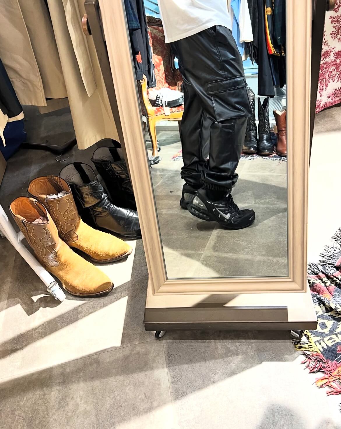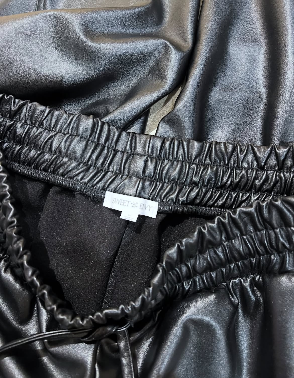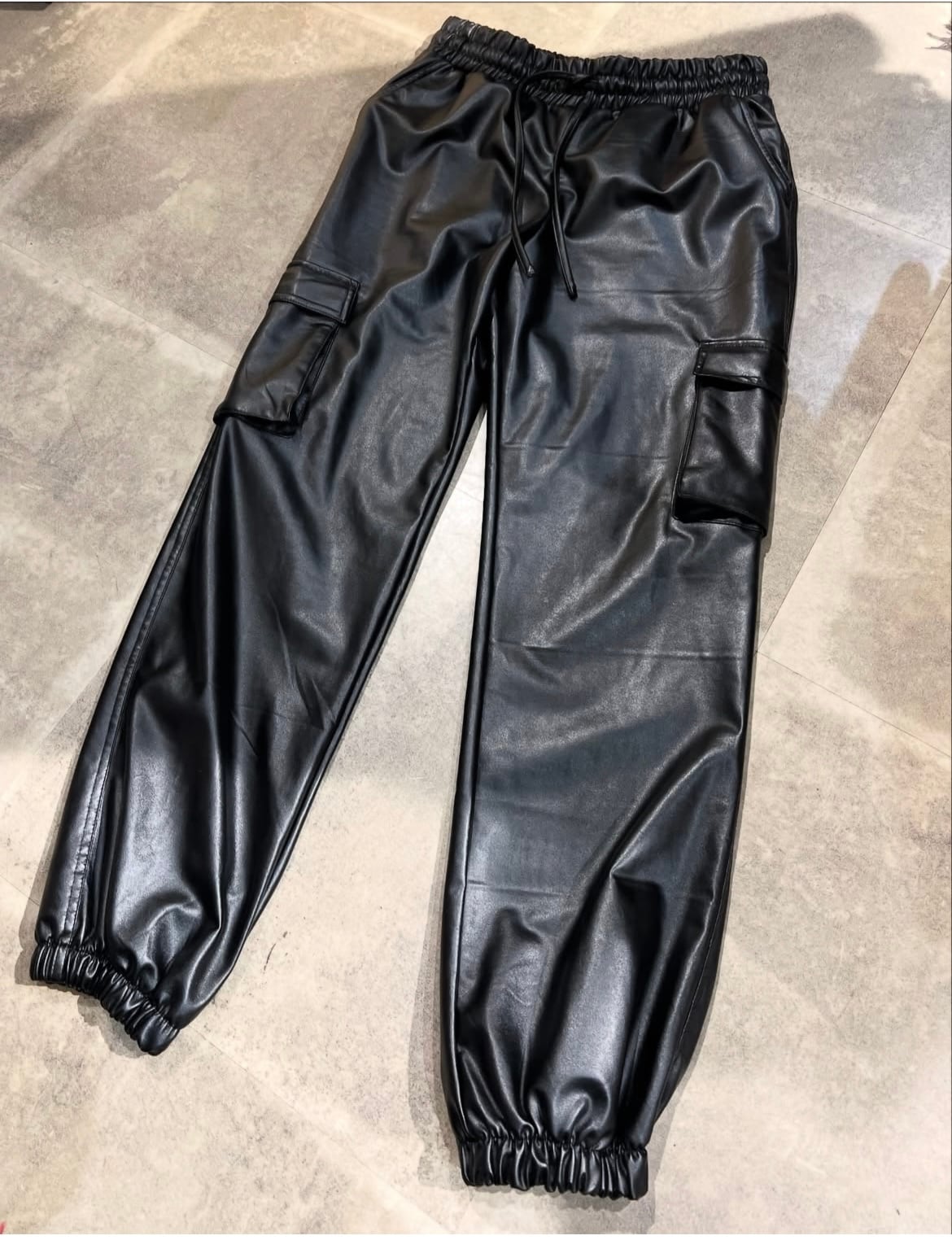 フェイクレザーのカーゴパンツ