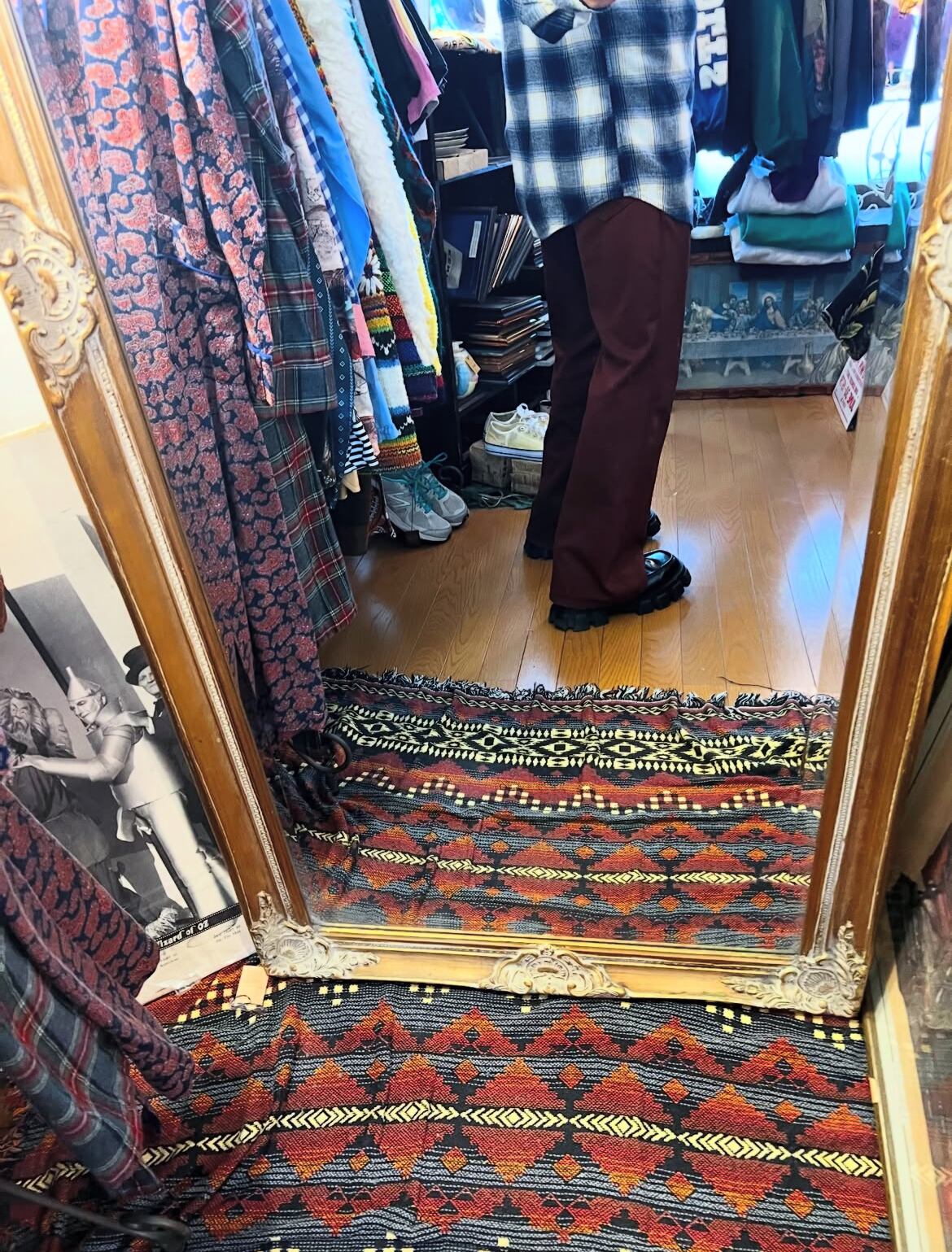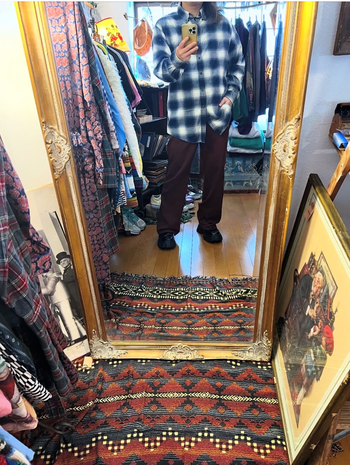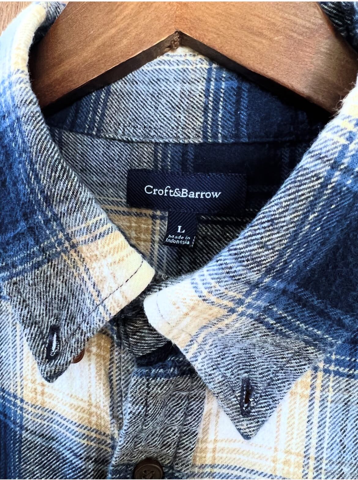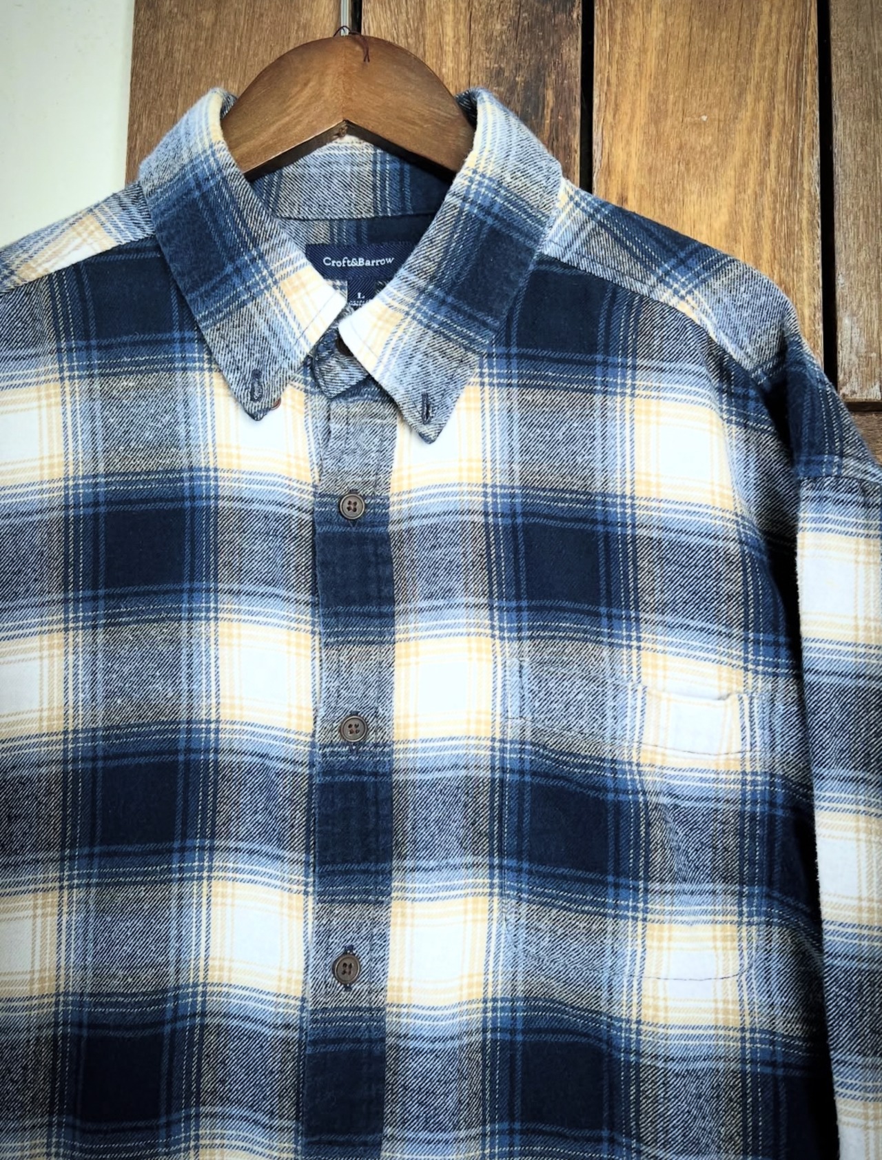 90's〜 "croft&barrow" L/S right wool onbre shirts 【L】