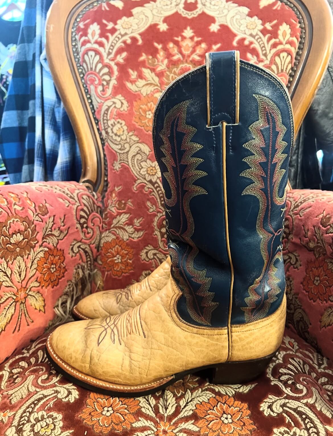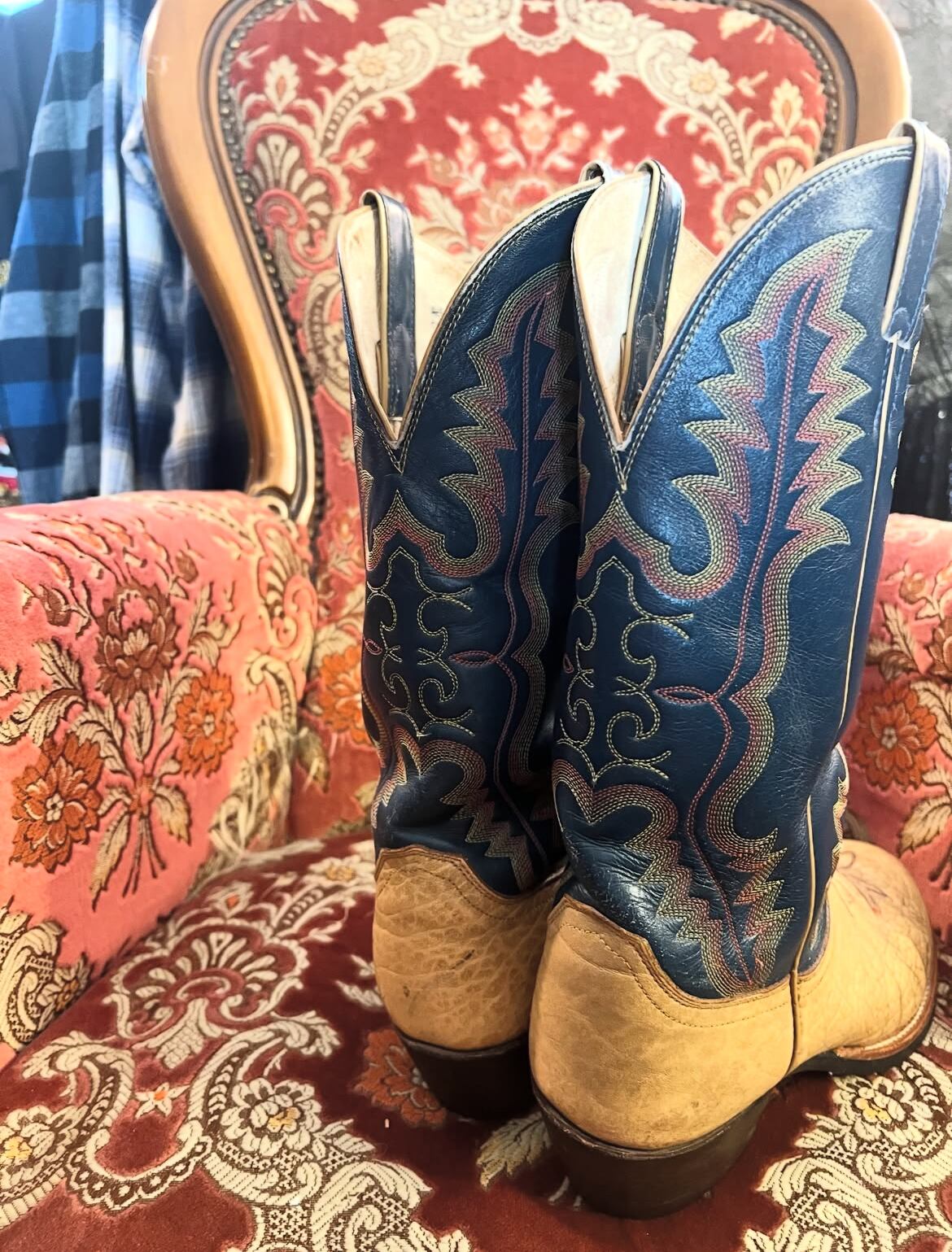 70's "JUSTIN" embroidery western boots【27.5㎝】