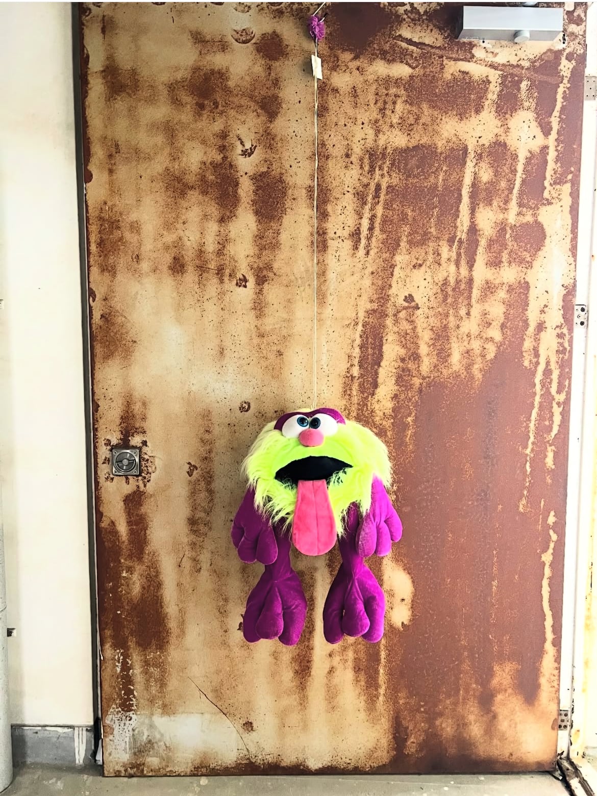 ネオンイエローの毛並みに、パープルの手足がオシャレな