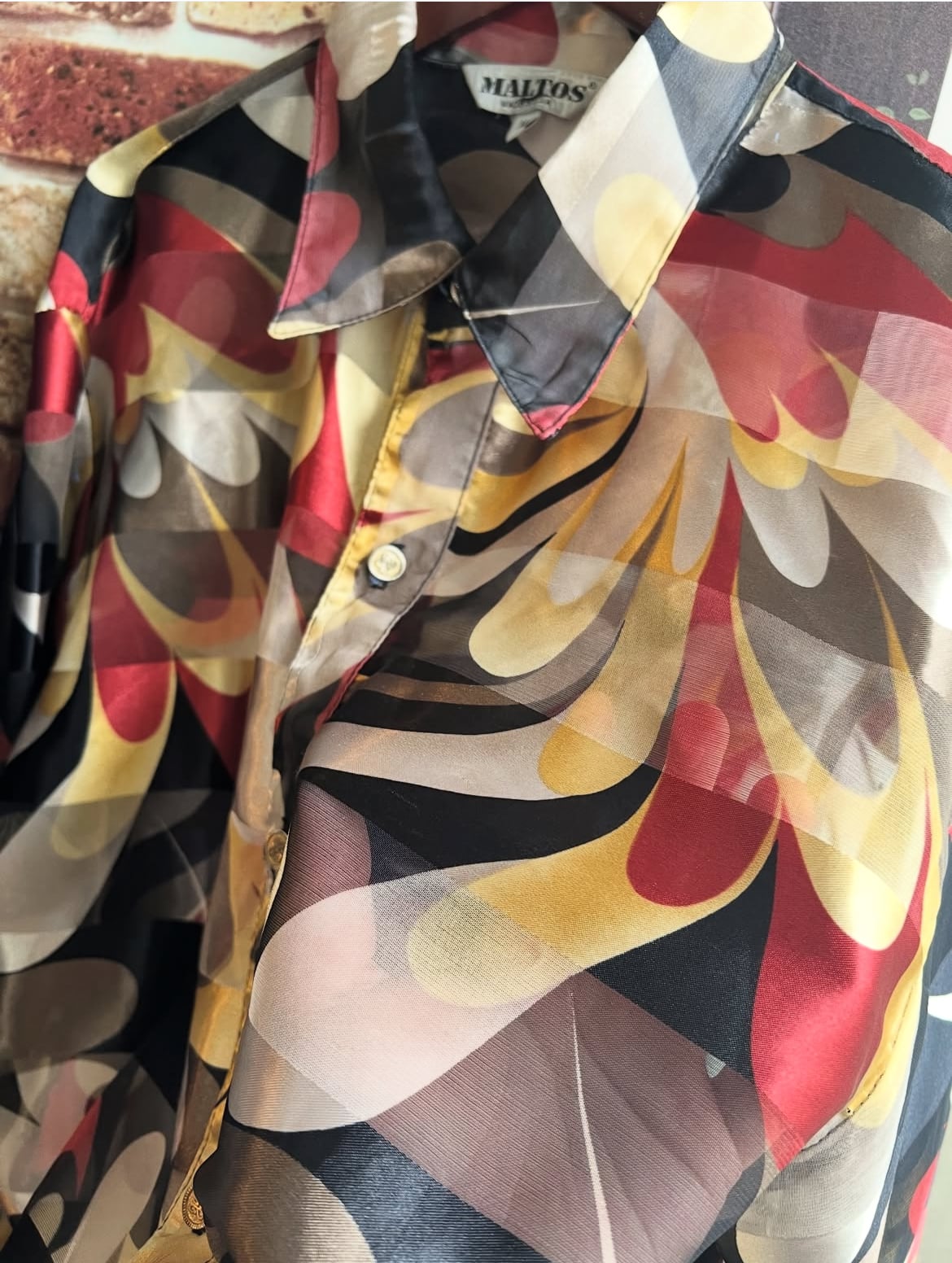 80's〜 MALTOS antiques design L/S See-through shirts【M】