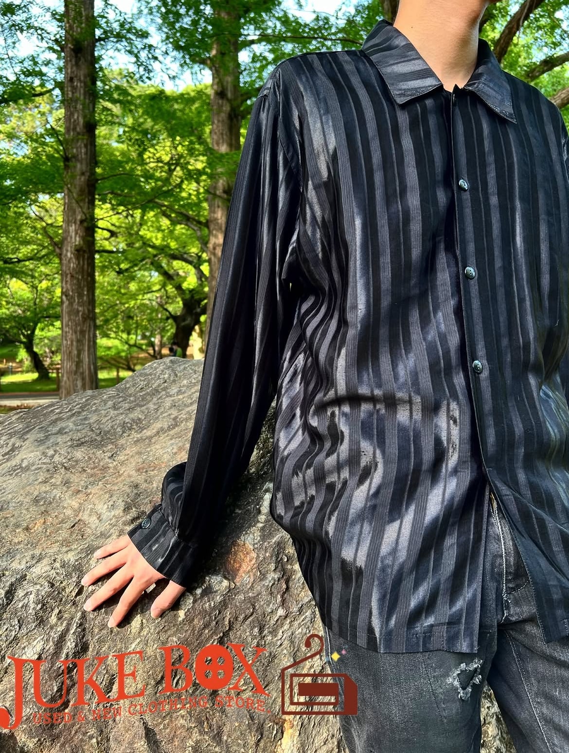 90's〜 See-through stripes L/S rayon shirts【L】