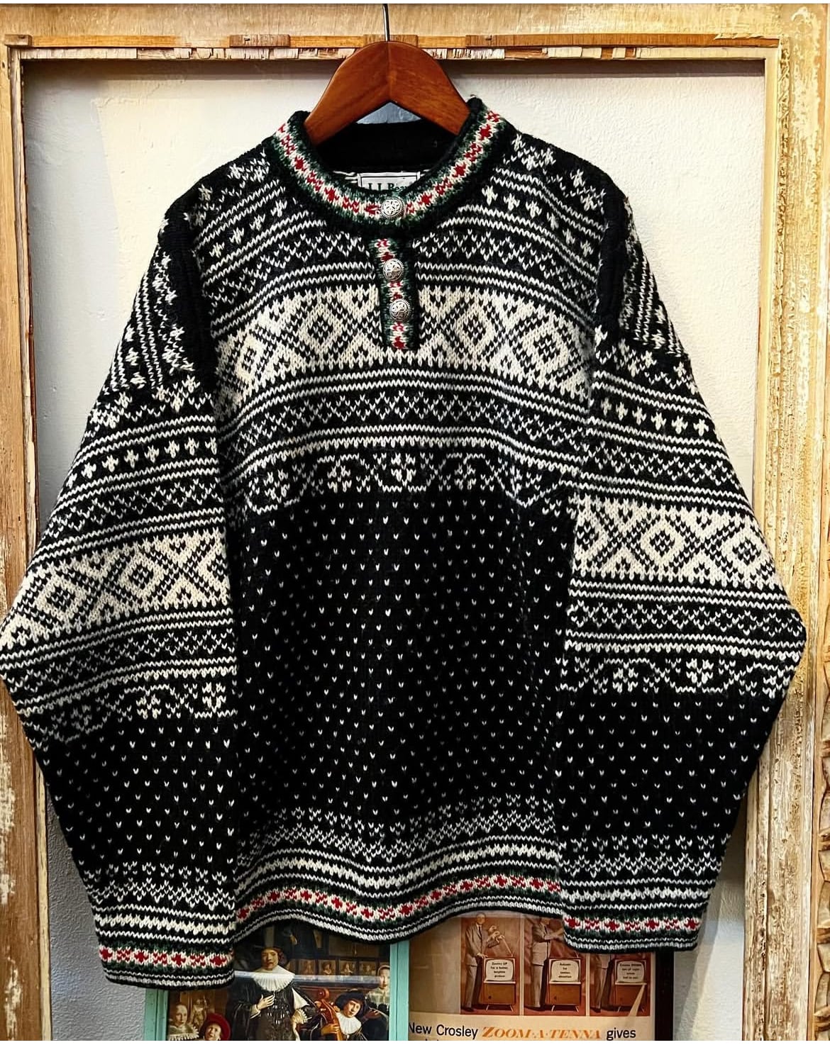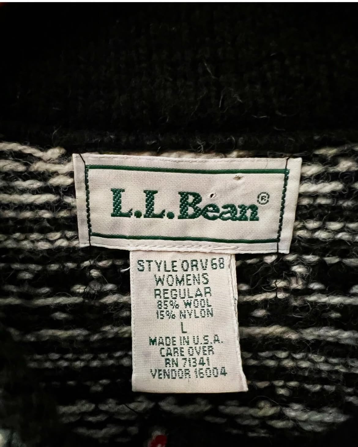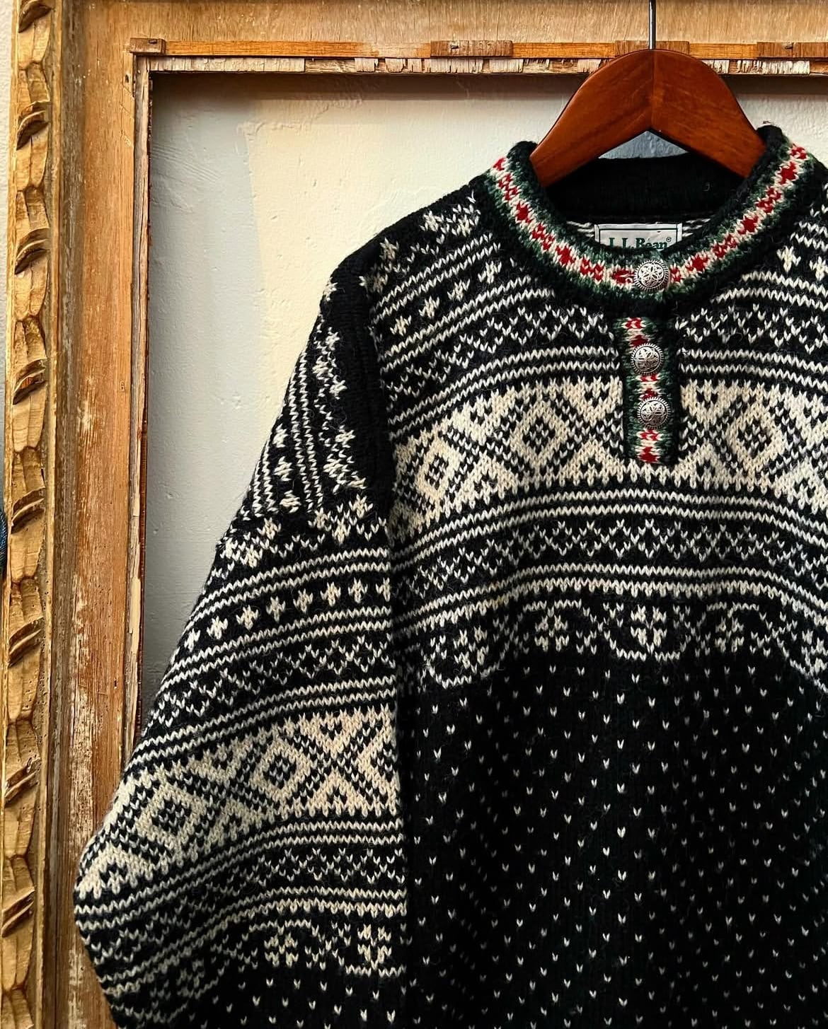 90's llbean birds-eye mix pattern Tyrolean knit 【L】