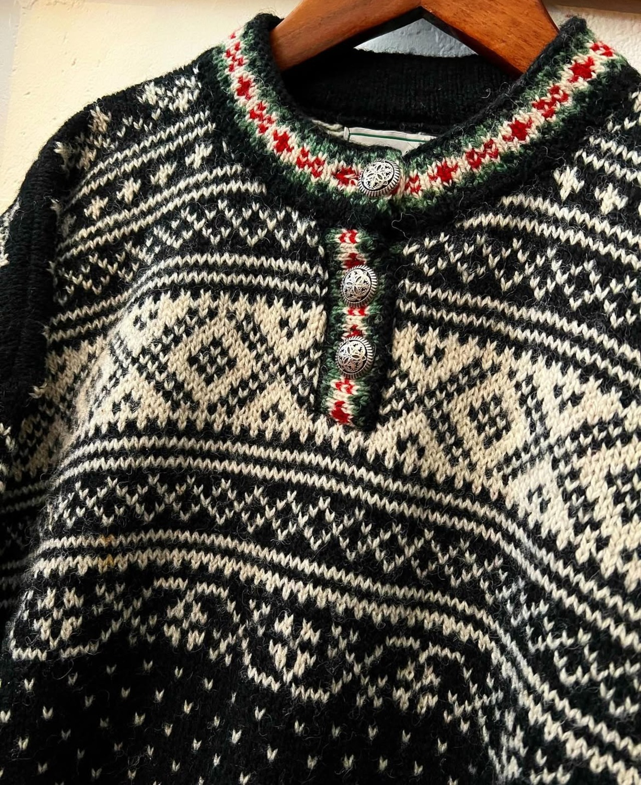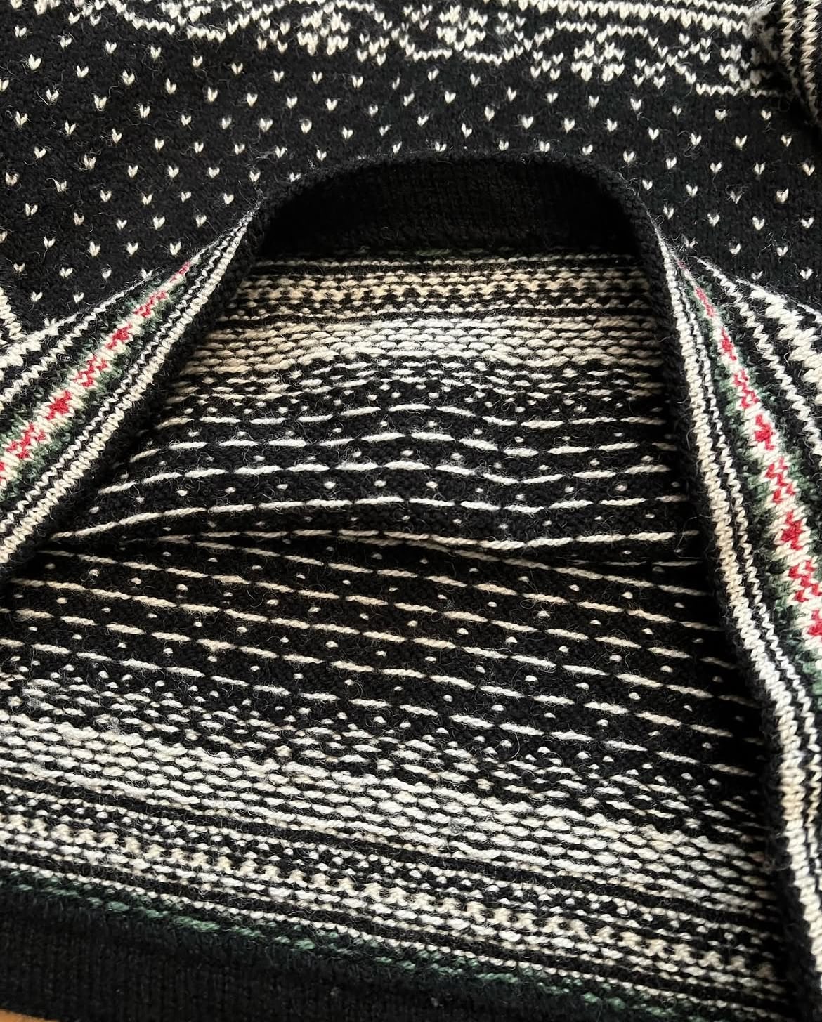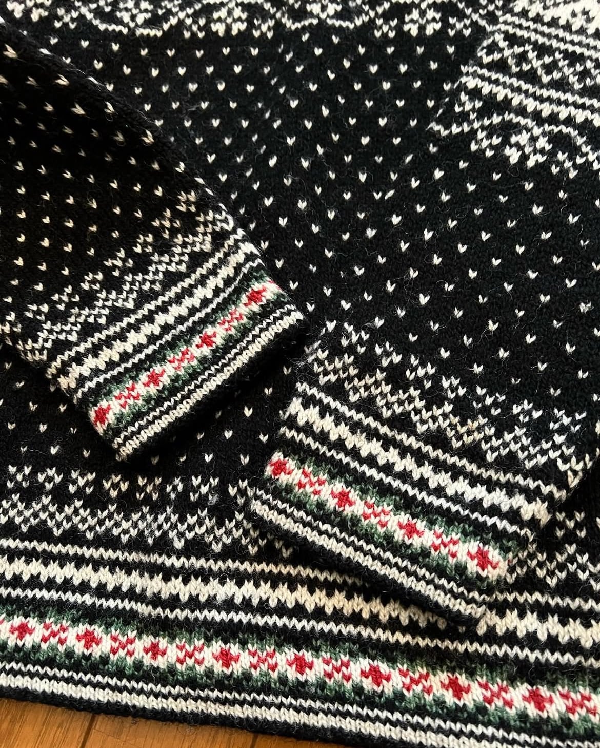 ジャガードのノルディック柄の切り返しに、
