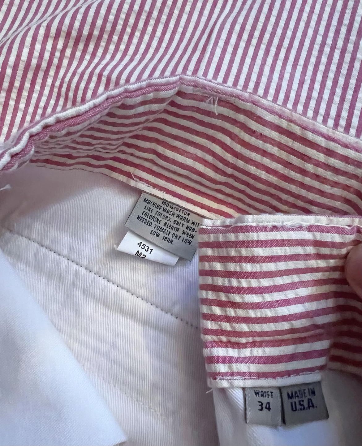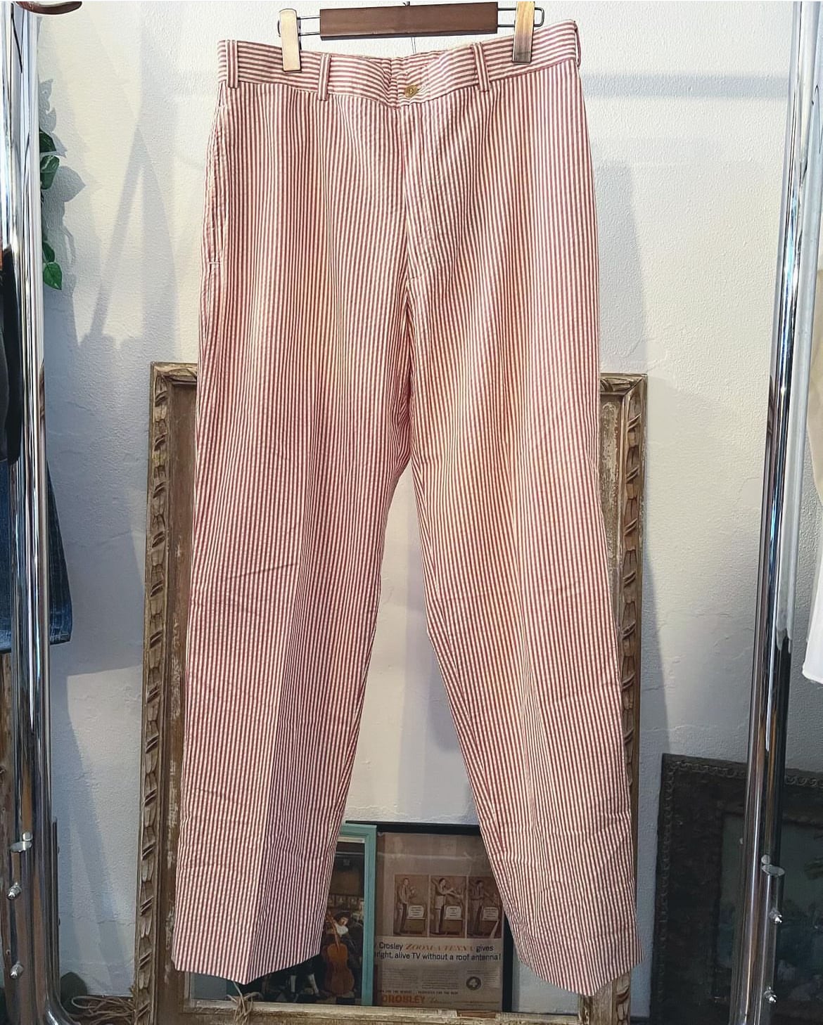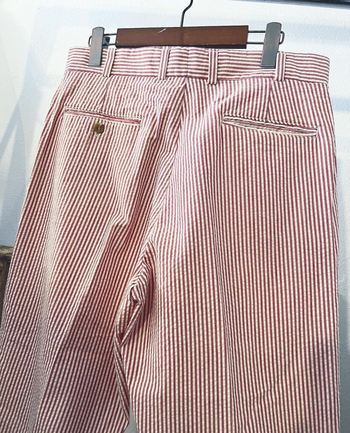 70's〜80's seersucker material stripes pattern slacks 【L】