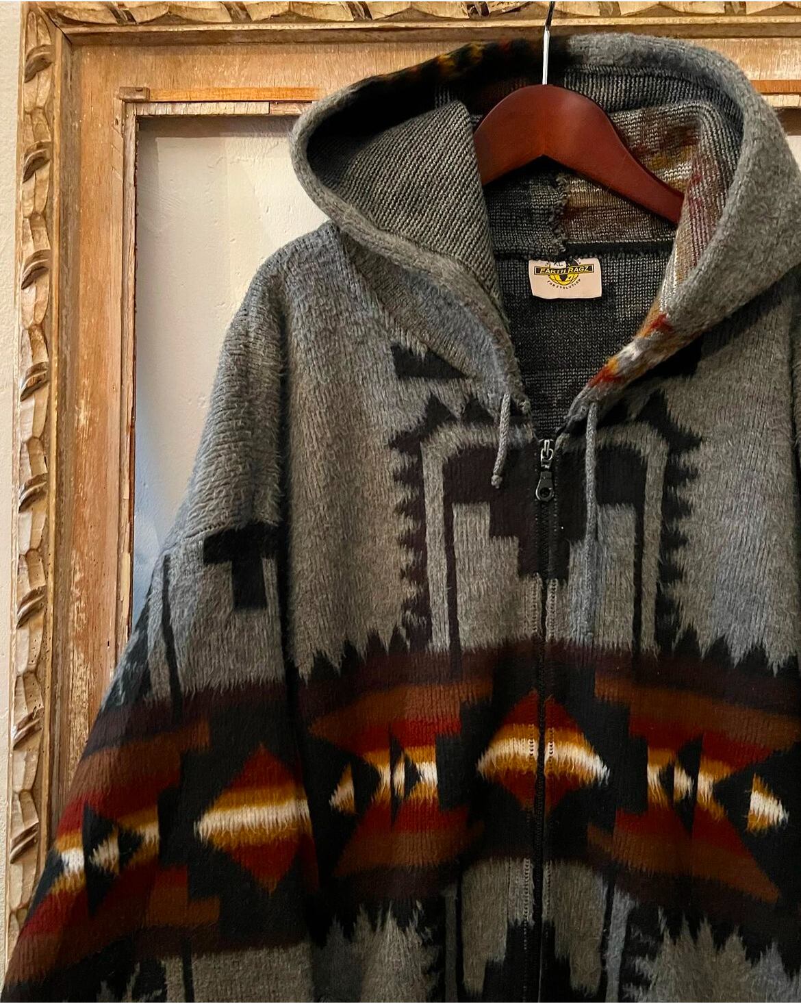 90s〜 " jacquard pattern " mohair like zip parker【XL】