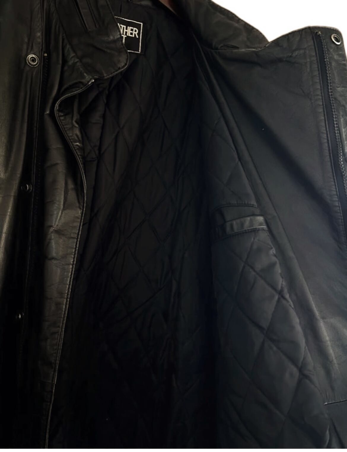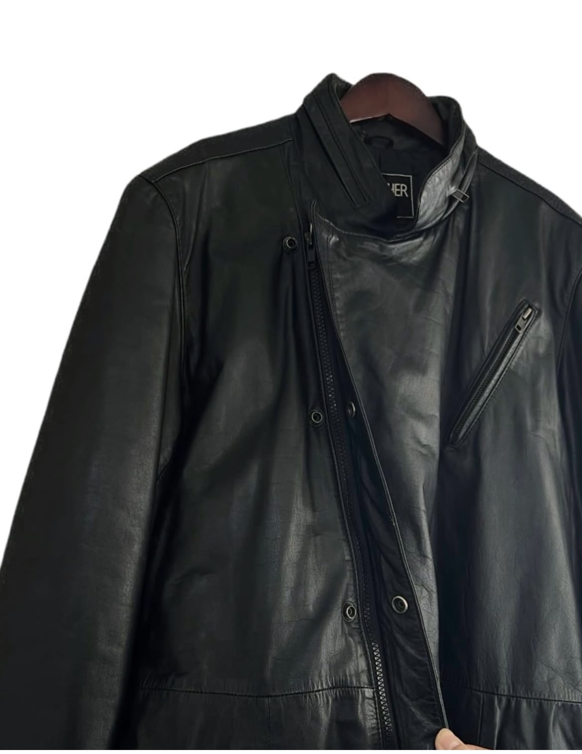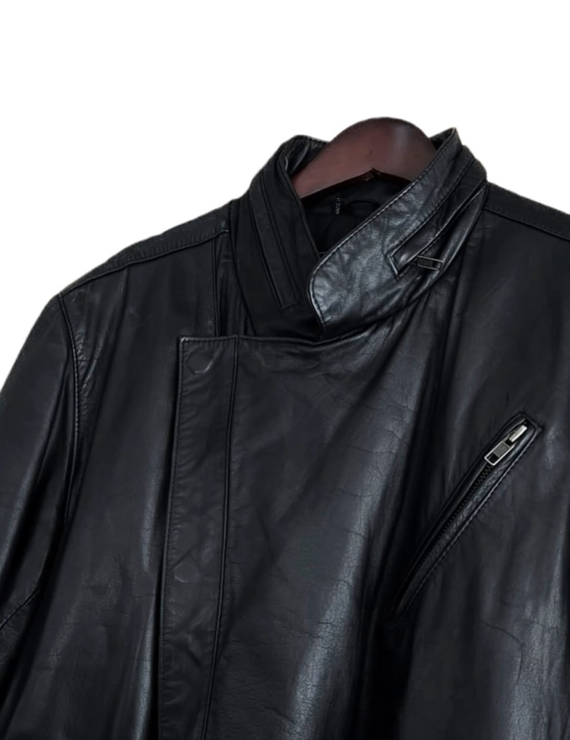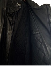 90's "stand color by slash side zip " real leather coat 【M】