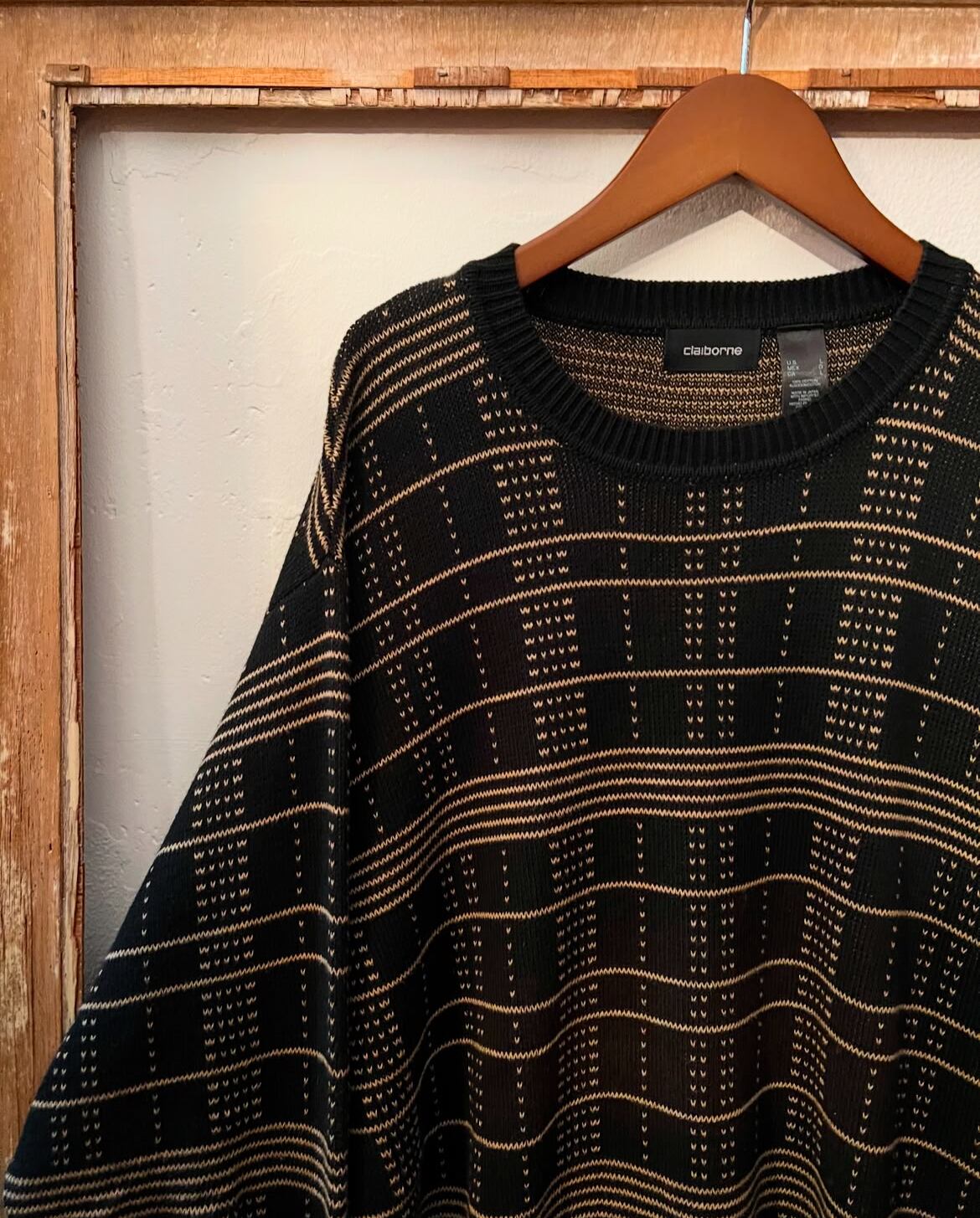 00's〜 Claiborne "birds-eye pattern" cotton knit 【L】